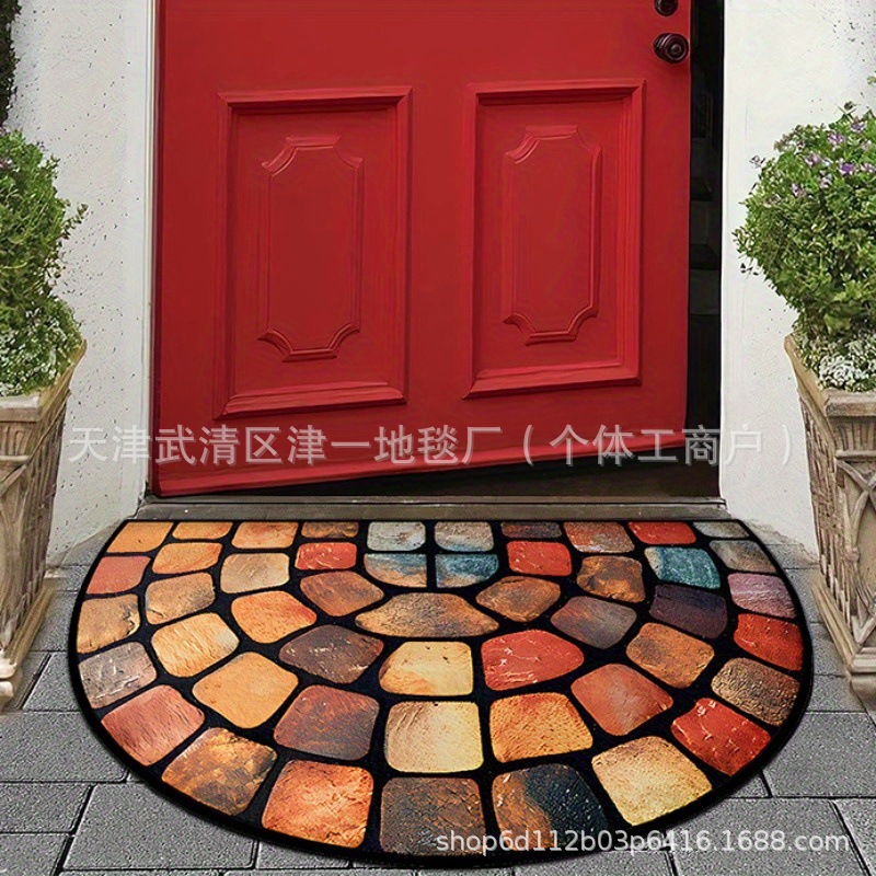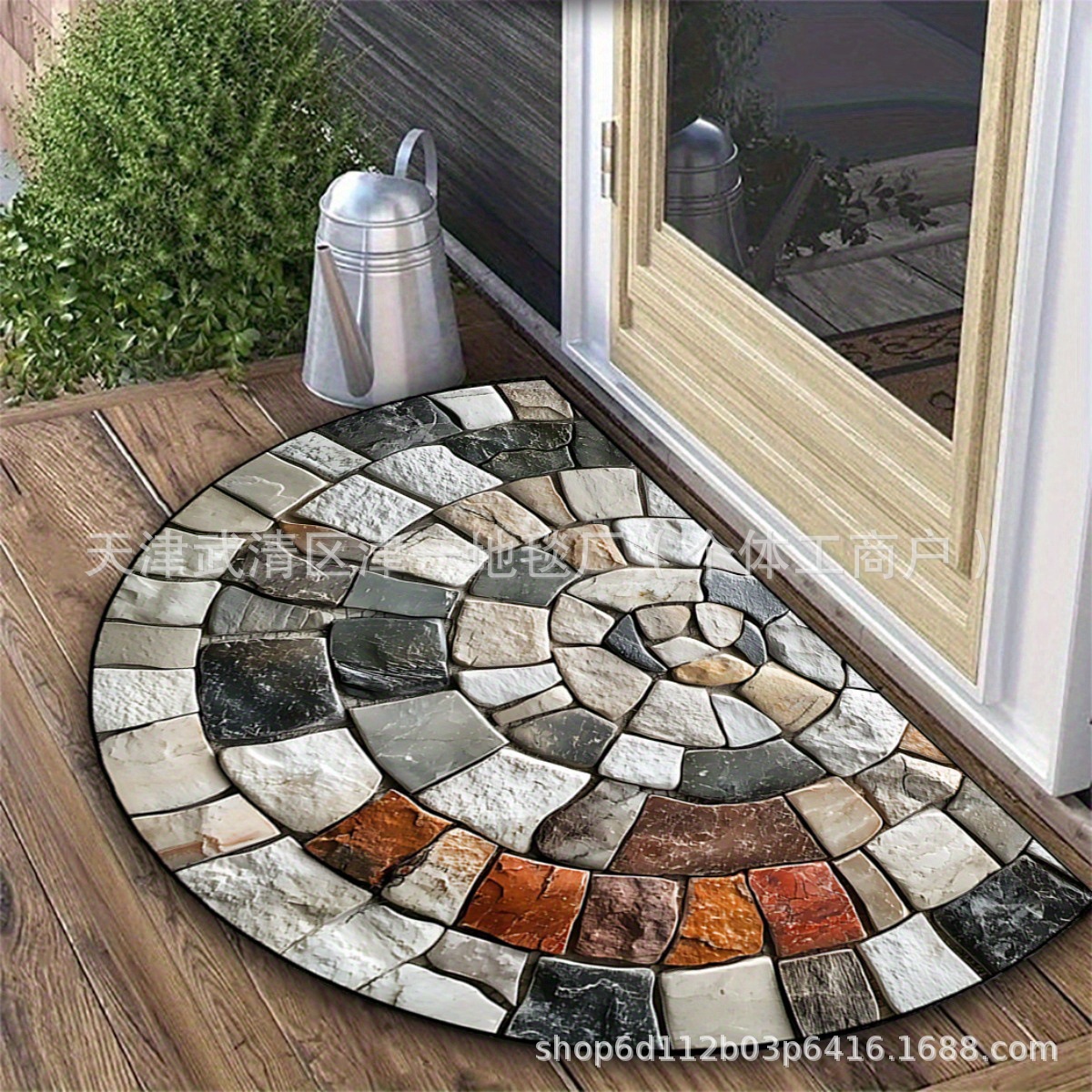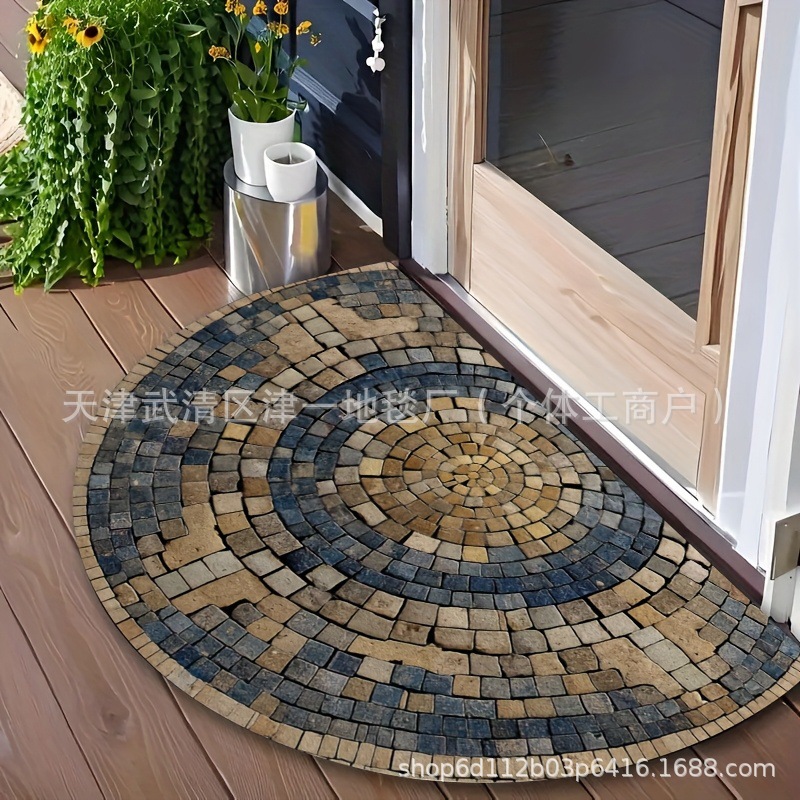跨境temu热销花砖石纹半圆水晶绒入户玄关门口地垫耐脏耐磨代发垫