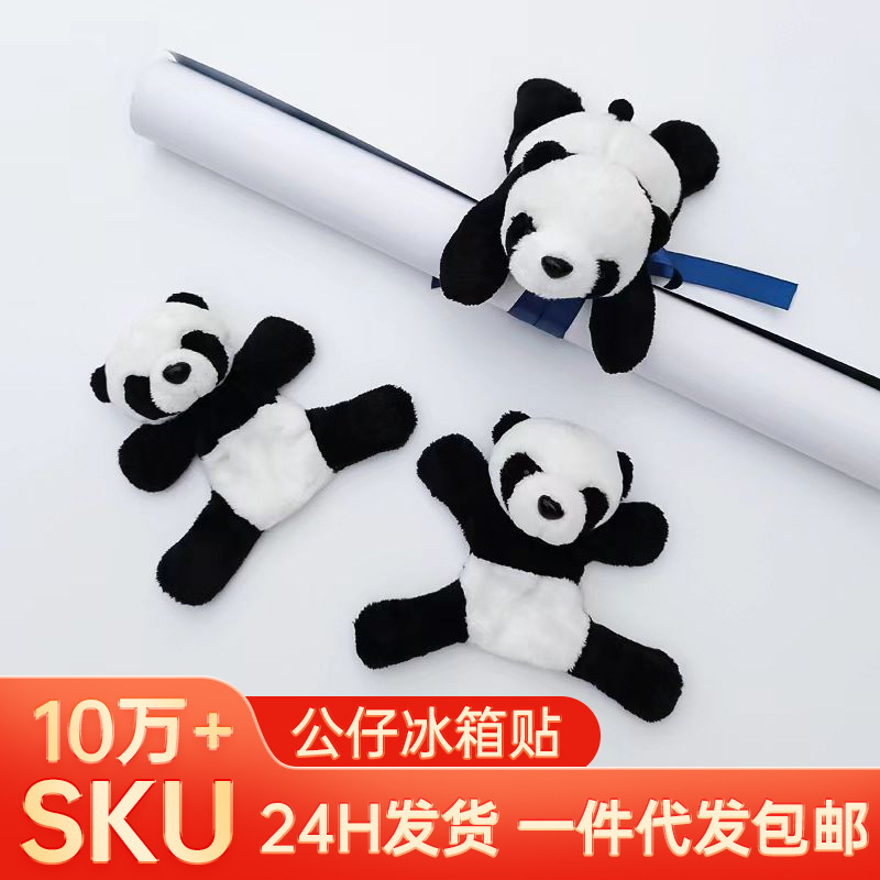 パンダのぬいぐるみ冷蔵庫にかわいいアニメのぬいぐるみ成都観光記念品のプレゼントを貼っています。