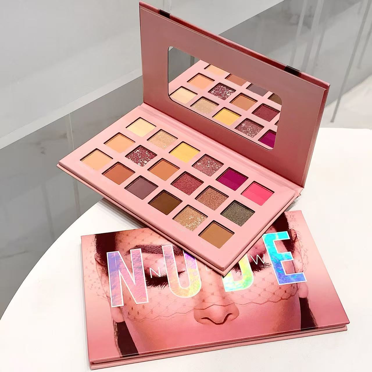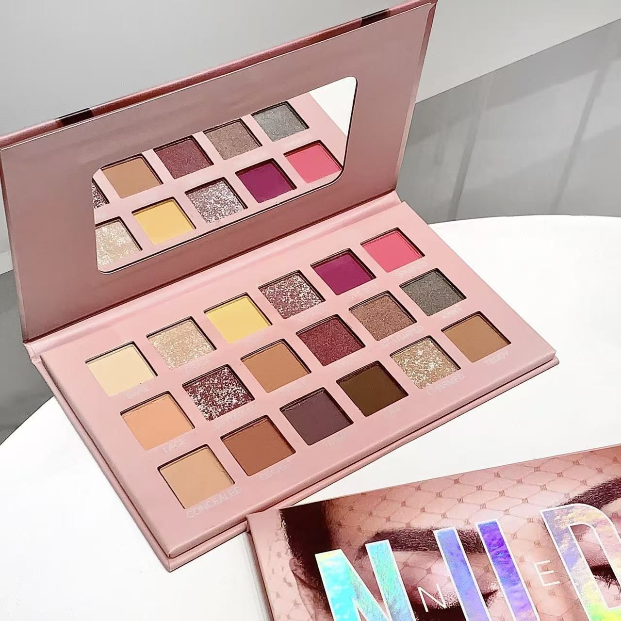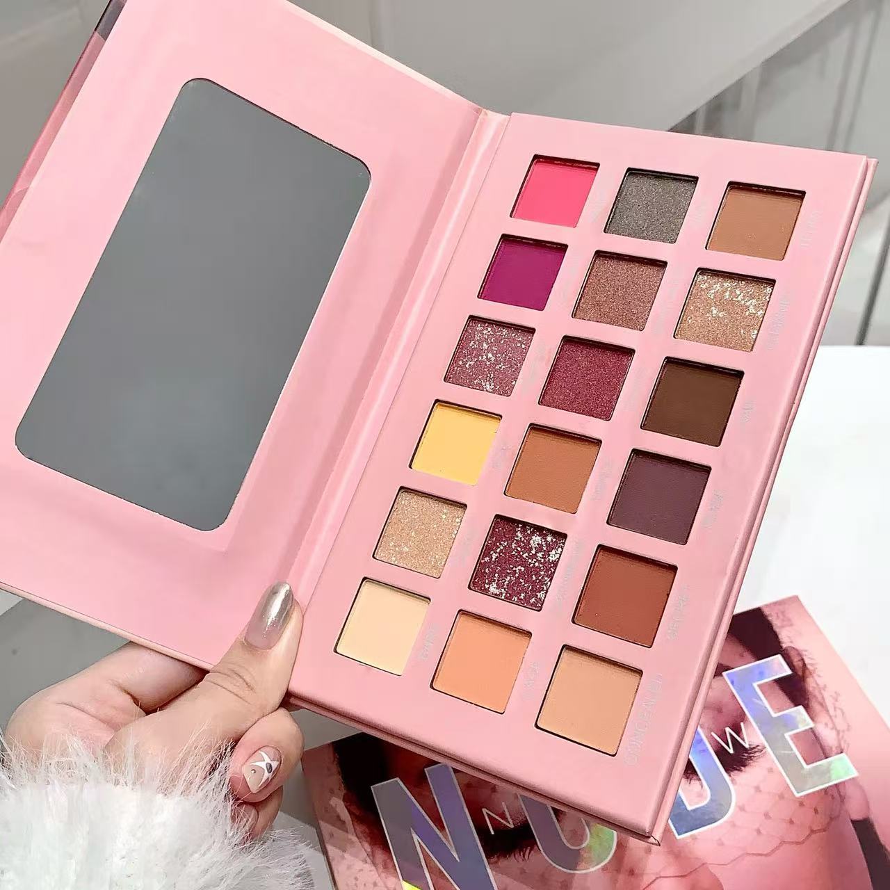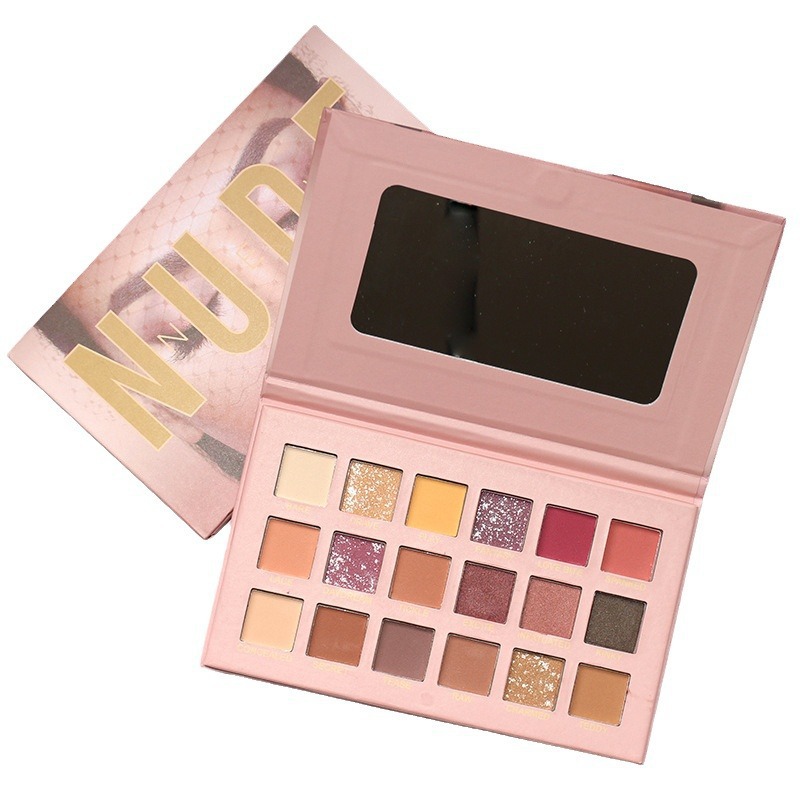 跨境裸色18色眼影盘哑光珠光细闪粉持久防水酒红眼妆沙漠玫瑰眼影
