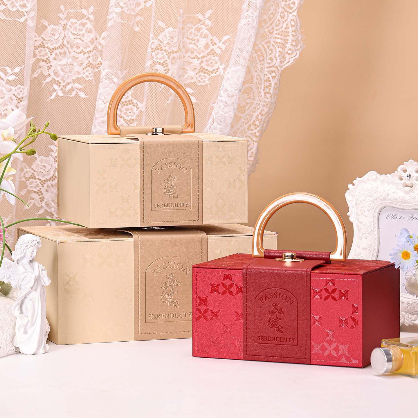 新型高級フランス風ベルベット竹節手提げ包装箱結婚お土産喜糖ギフトボックスバレンタインデーギフトボックス