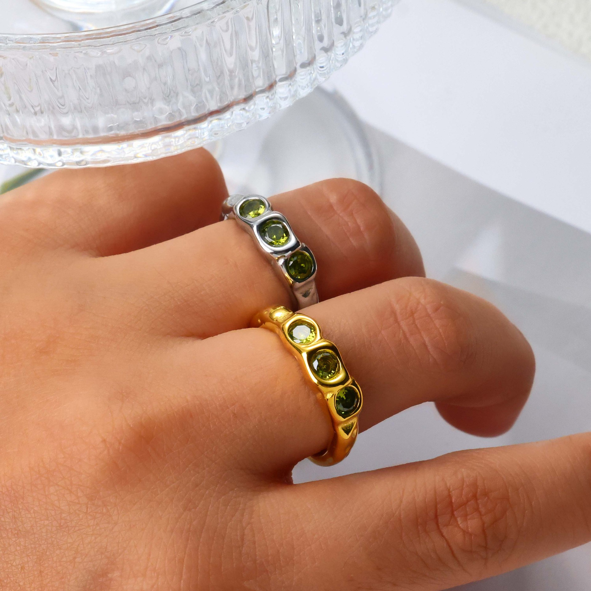 欧美跨境新款个性小众镶嵌单颗黄色锆石戒指女士适合日常聚会派对