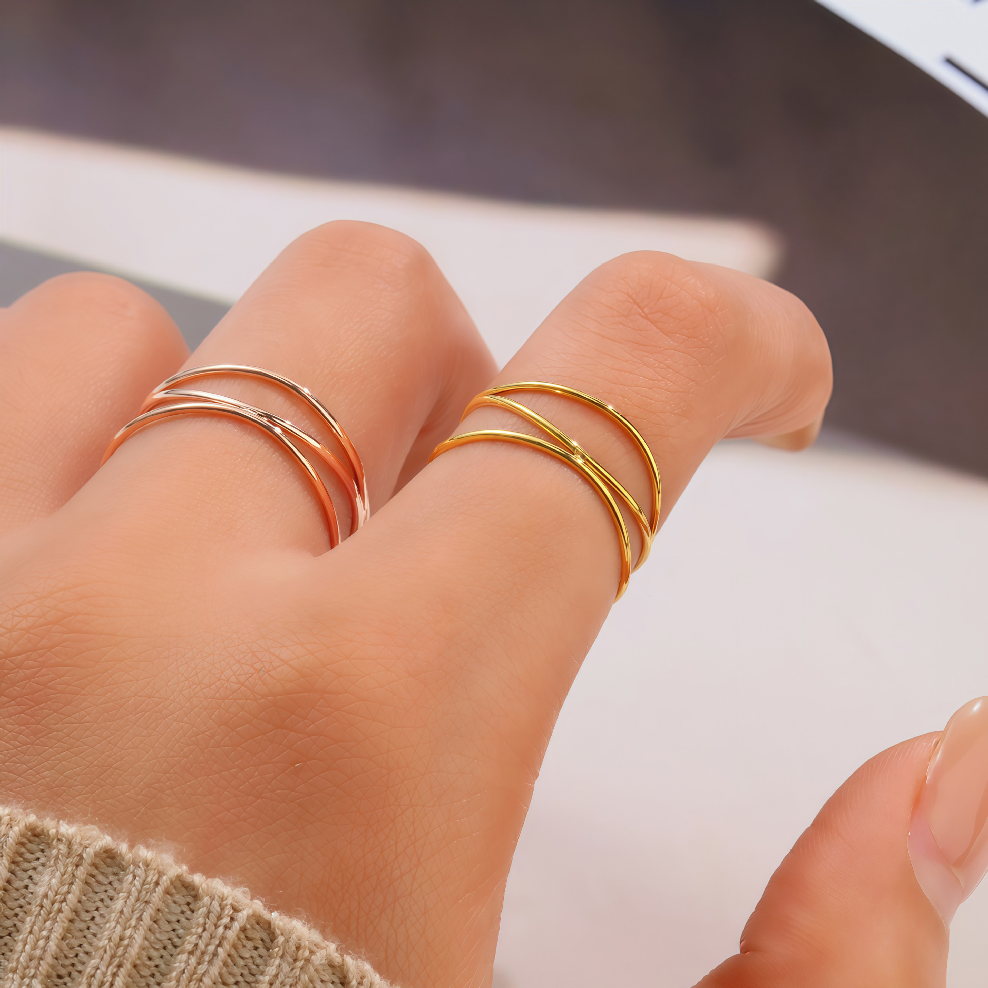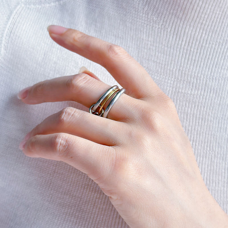 おしゃれで軽やかな三連リング、韓国風シンプルで個性的なデザイン、多用途で上品なチタン製ハンドジュエリー、メーカー直販