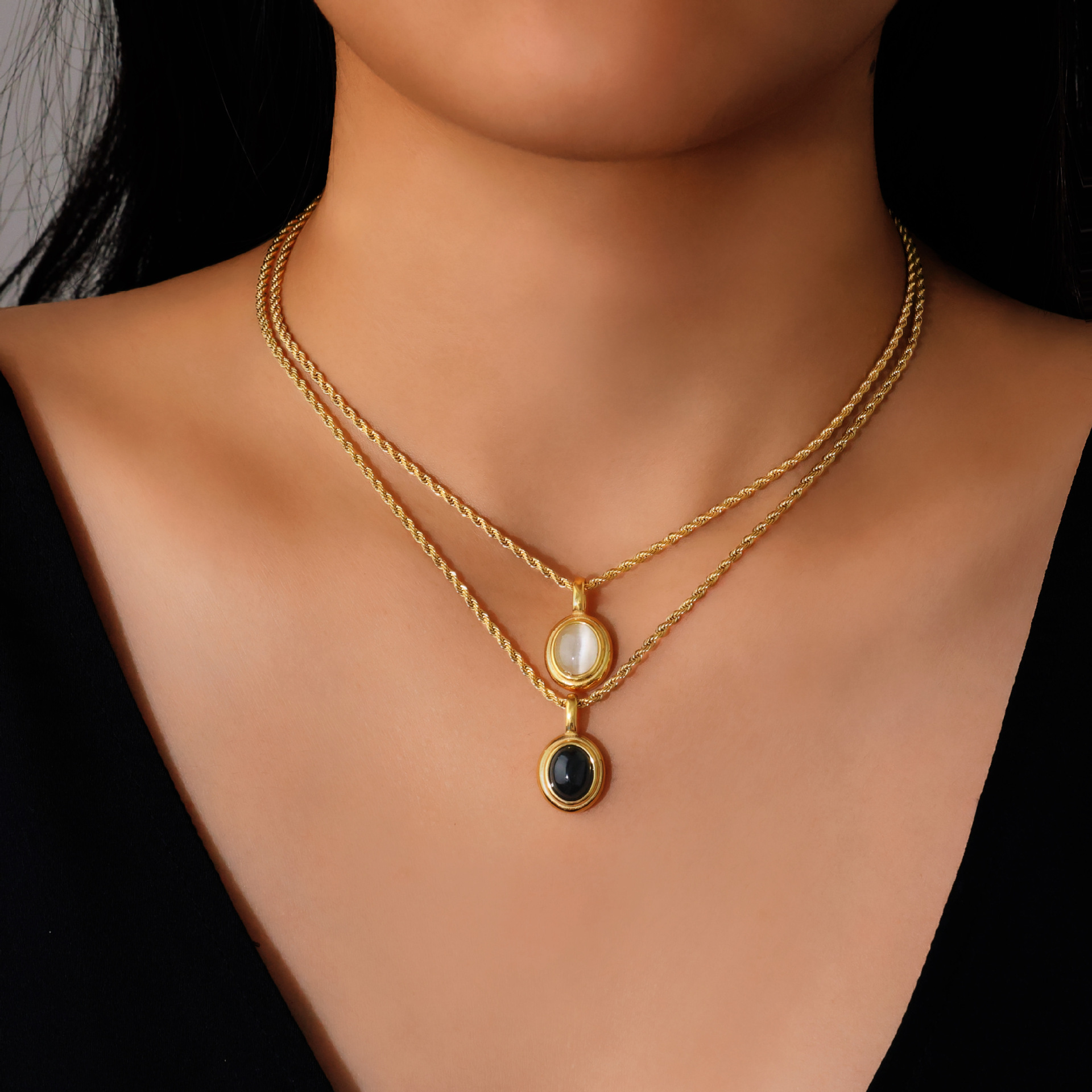 韩美麻花チェーン白黒猫眼ネックレス女性流行個性気質ステンレスメッキ18k百合