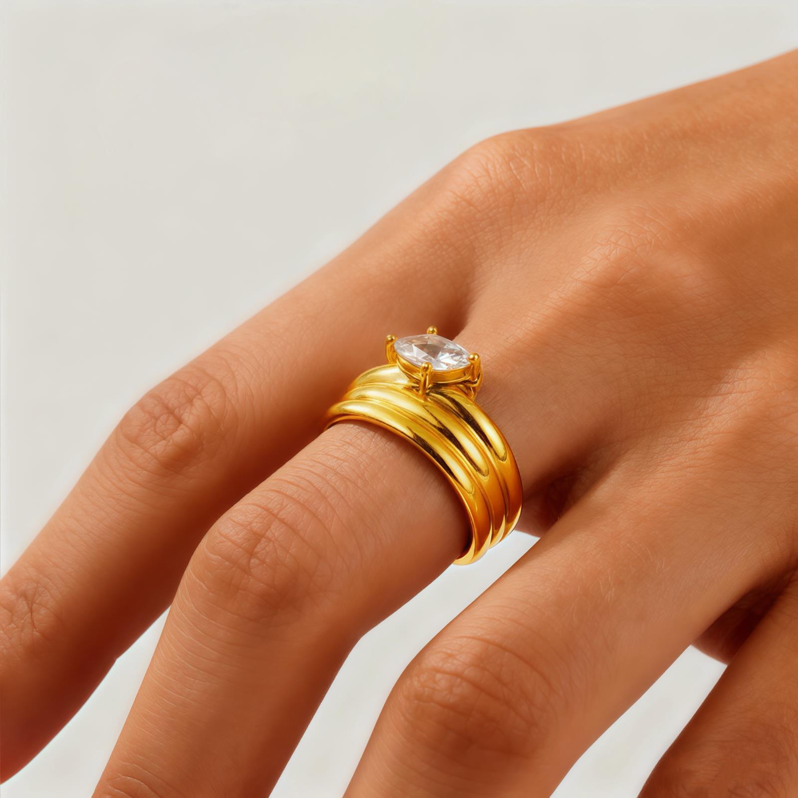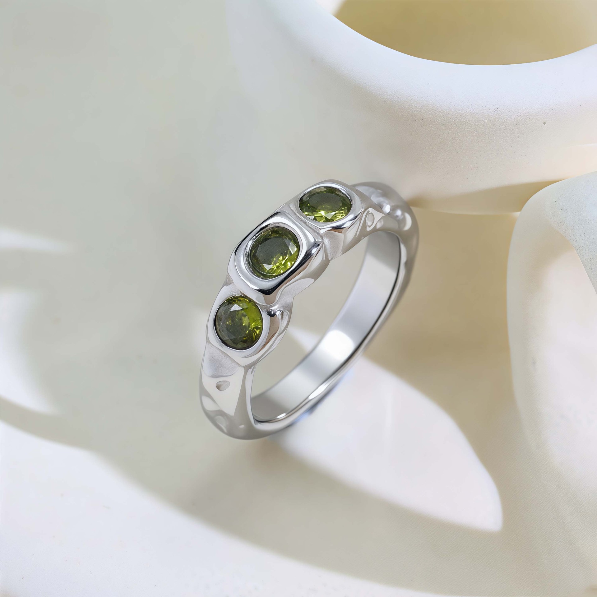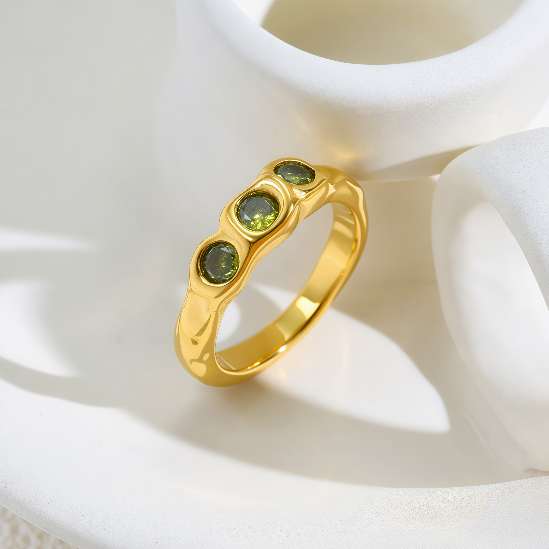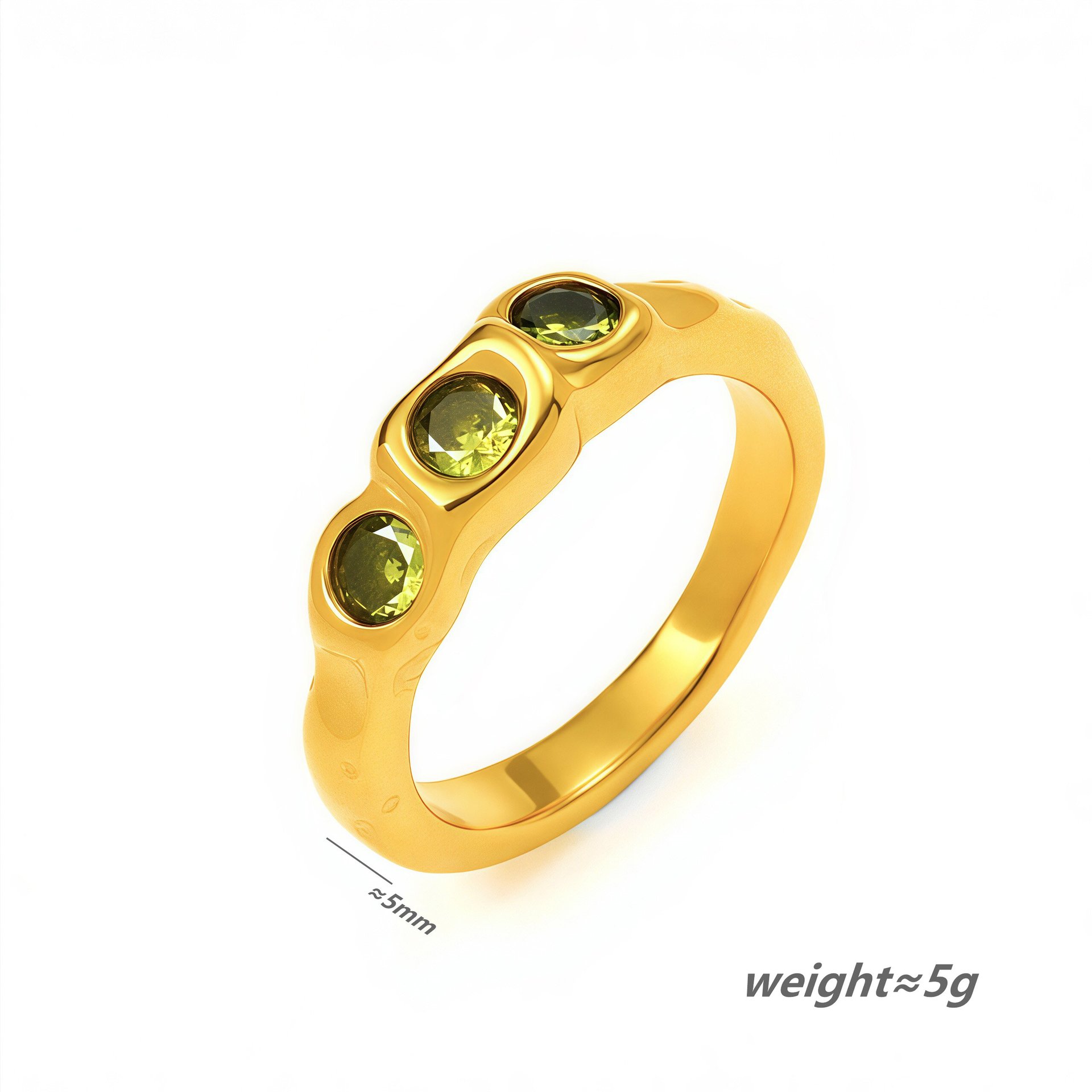 新款个性设计镶嵌三颗锆石戒指女适合日常通勤百搭不褪色厂家直销