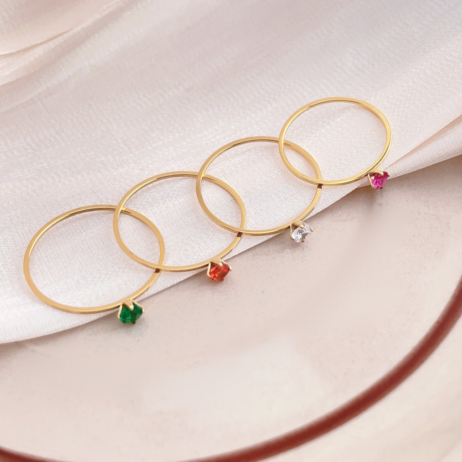 颜色 三颗锆石戒指 金色 C266,三颗锆石戒指 银色 C266