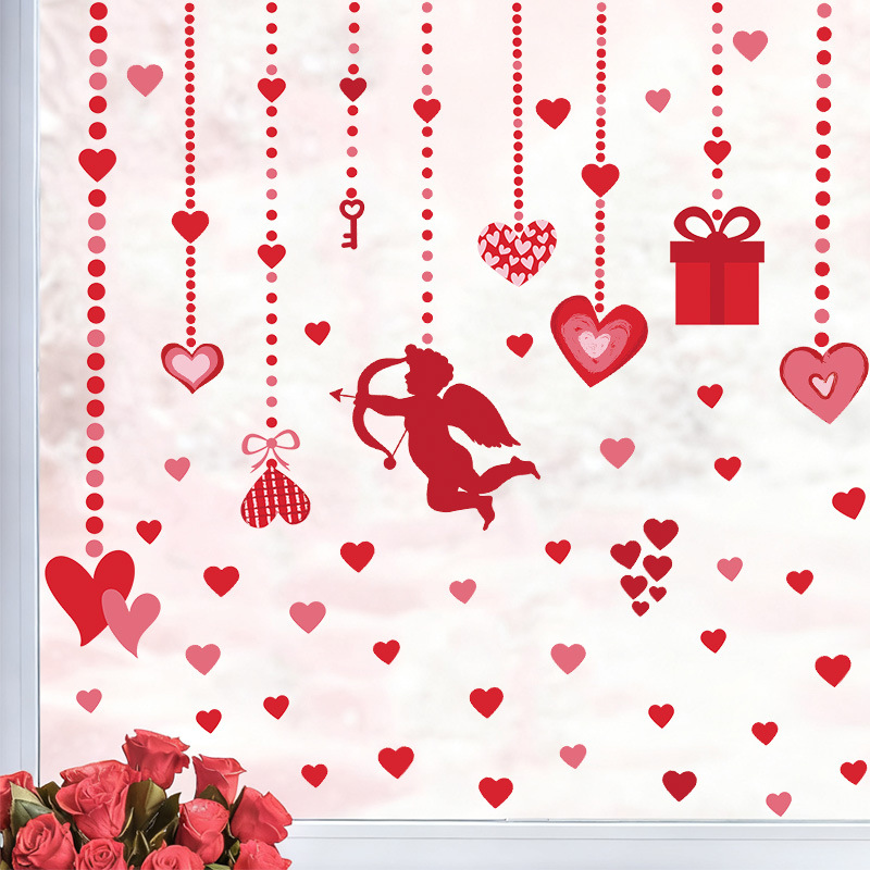 跨境情人节红色爱心墙贴窗贴卧室墙面家居装饰美化墙贴纸批发自粘