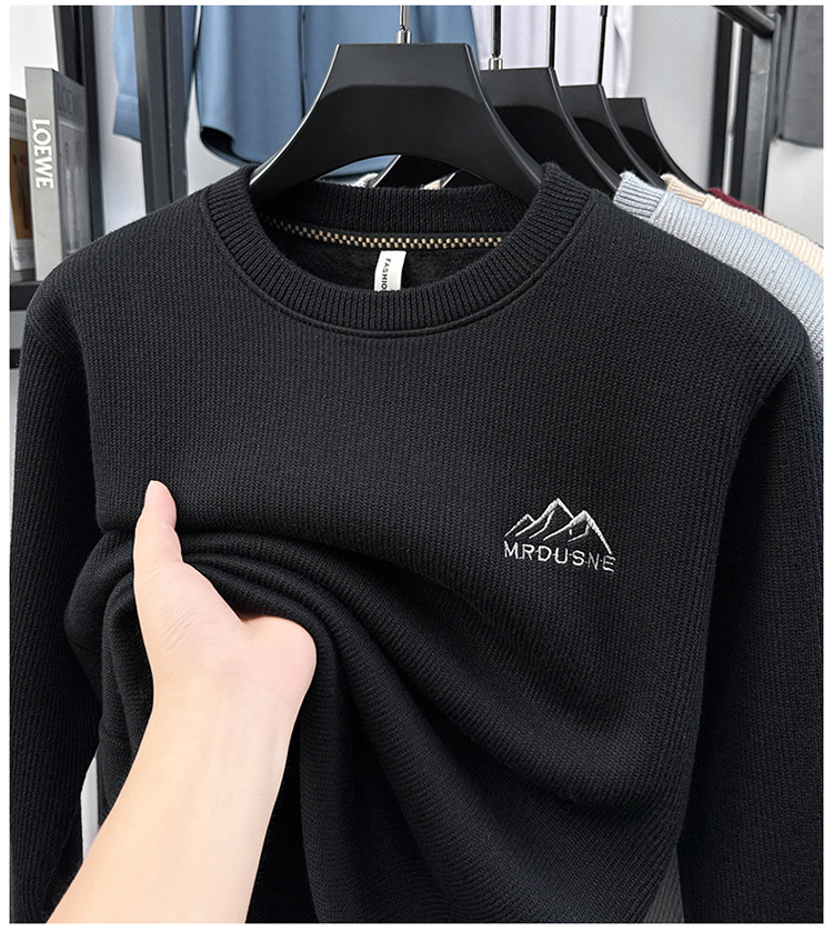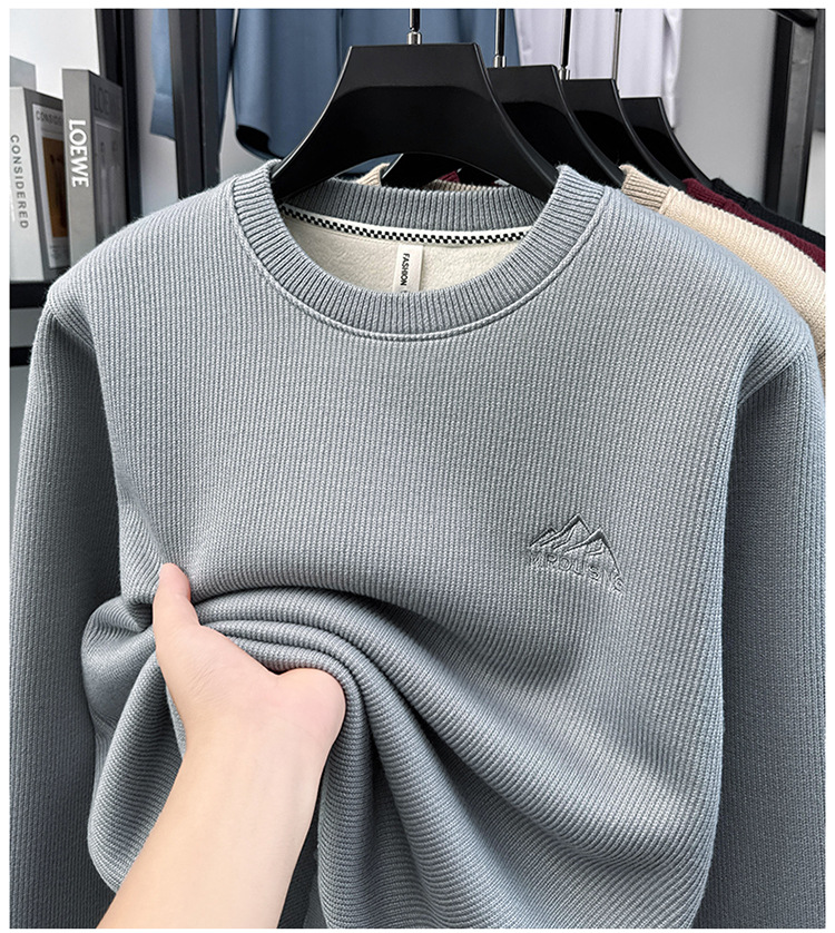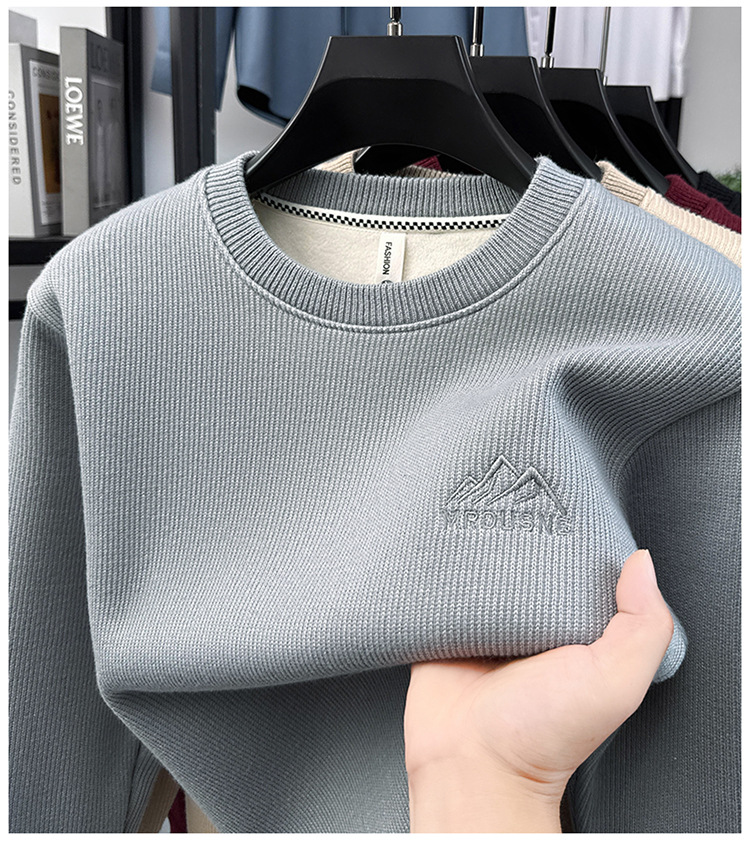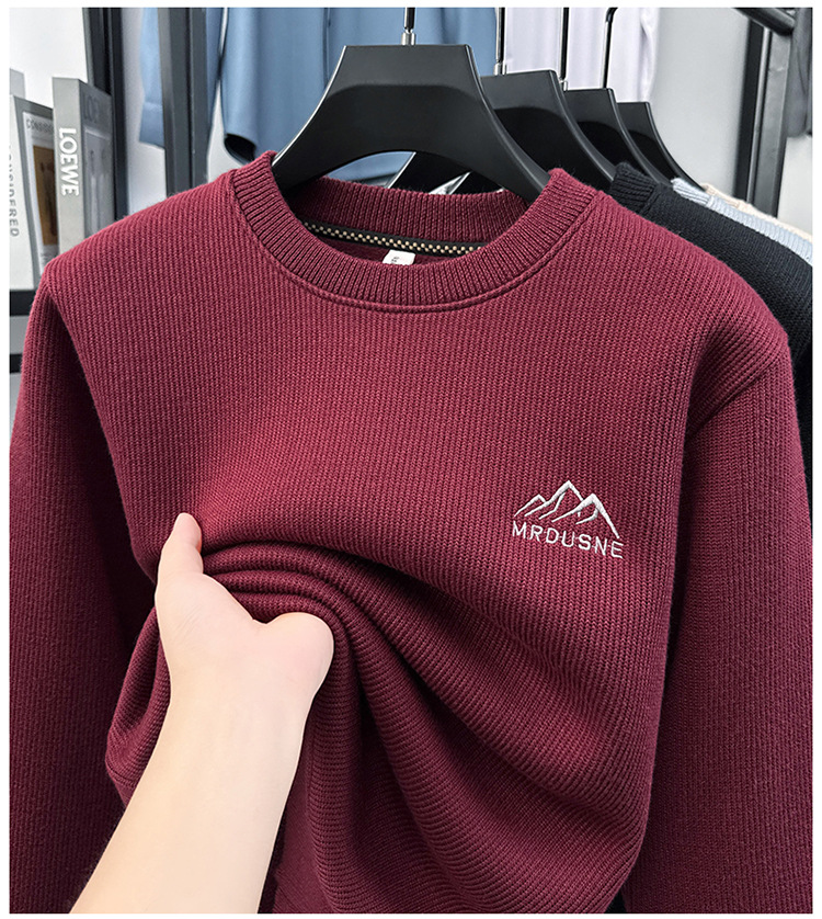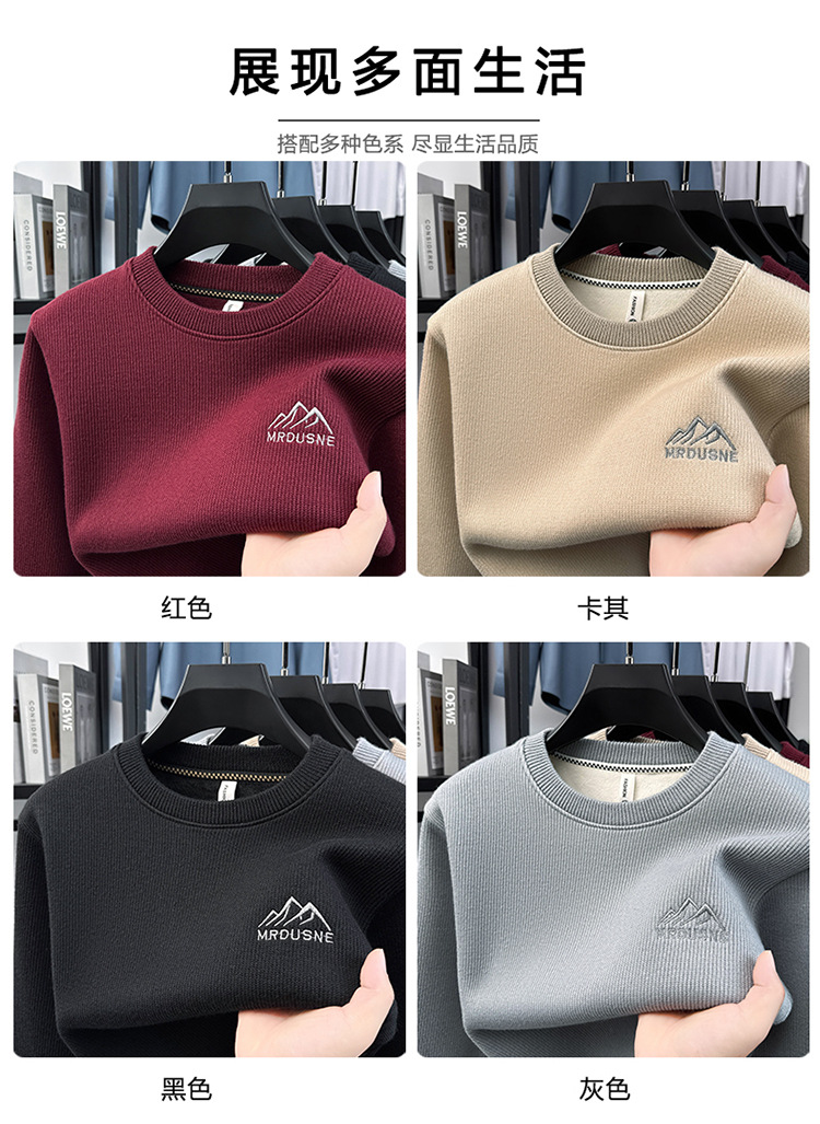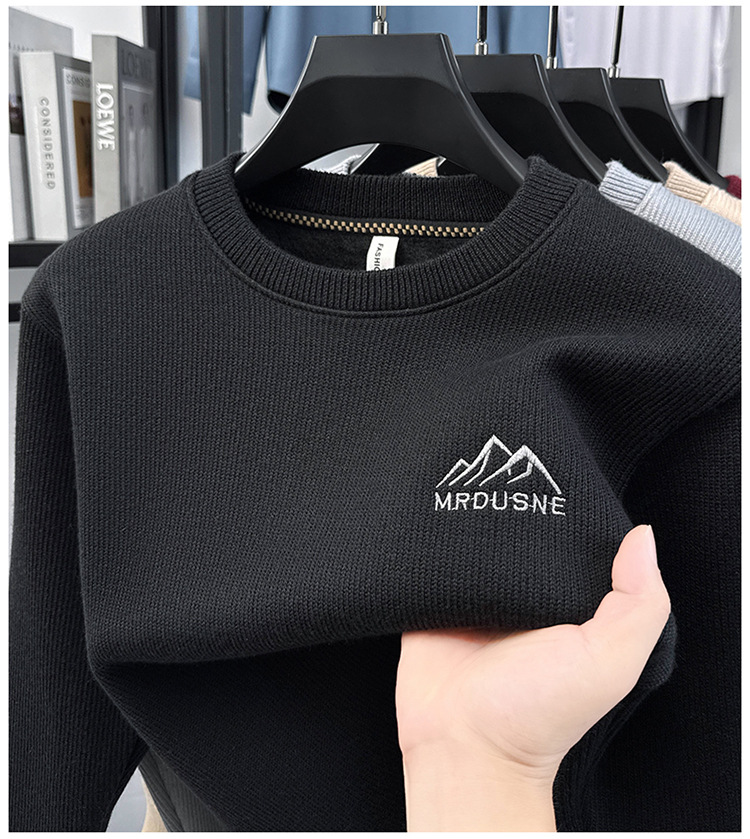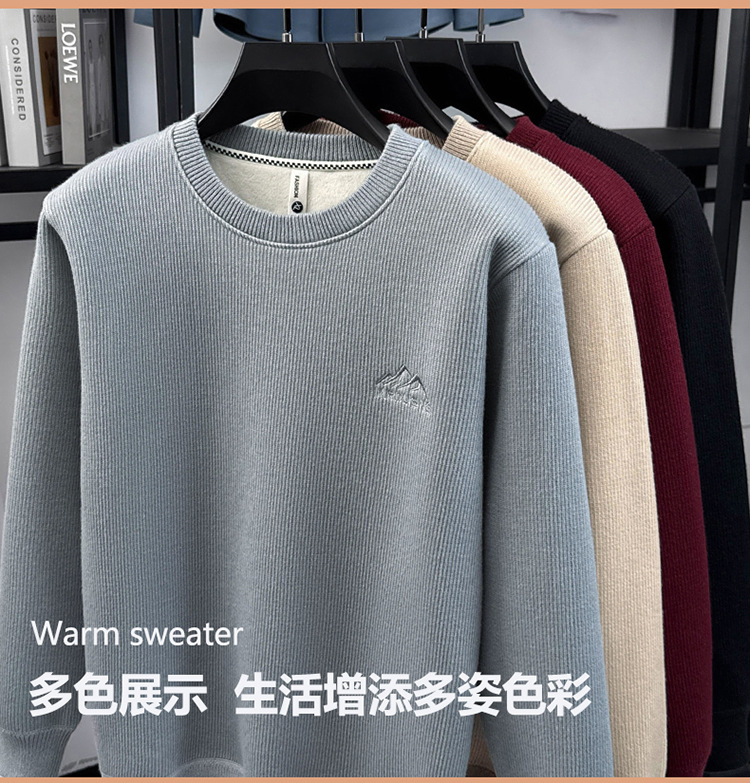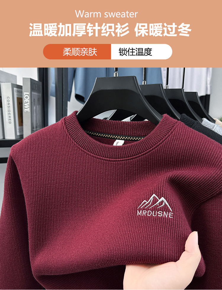 卫衣男圆领加绒加厚保暖针织毛衣男秋冬休闲百搭长袖T恤男打底衫