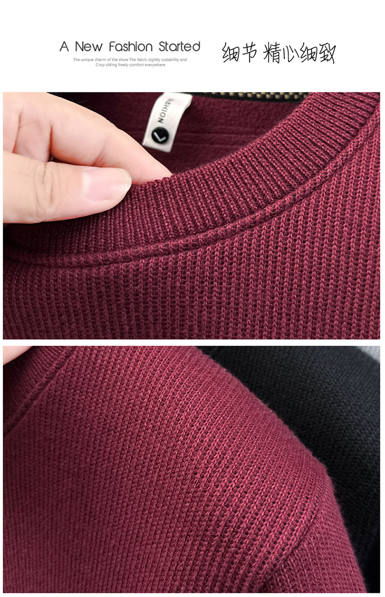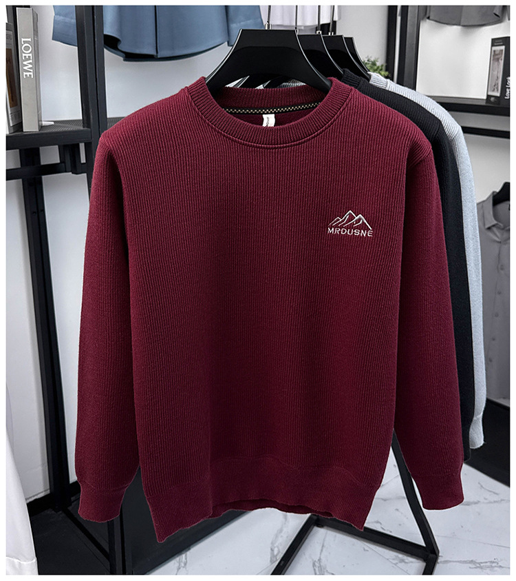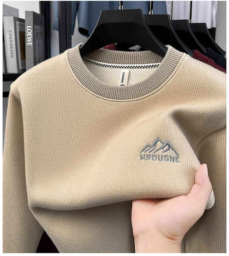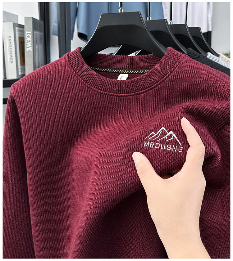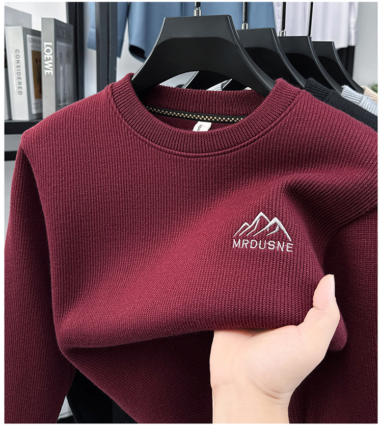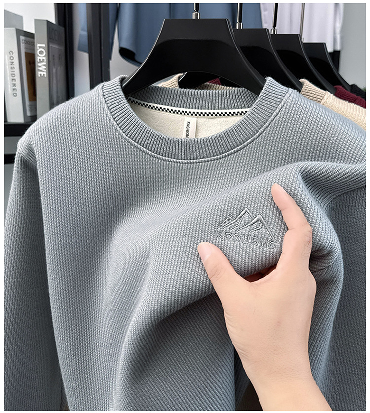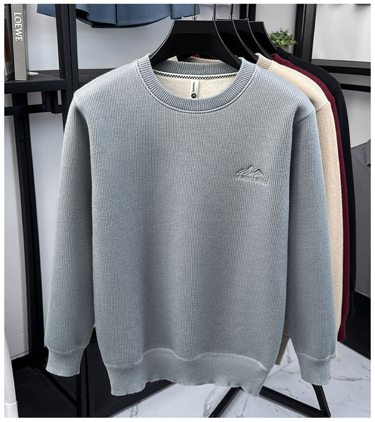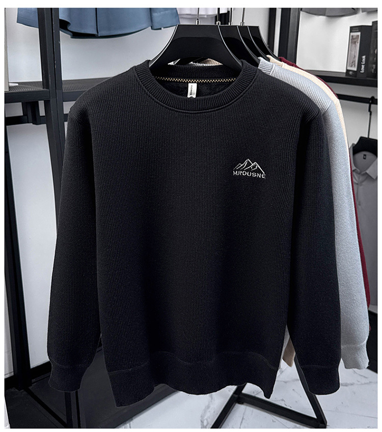 卫衣男圆领加绒加厚保暖针织毛衣男秋冬休闲百搭长袖T恤男打底衫