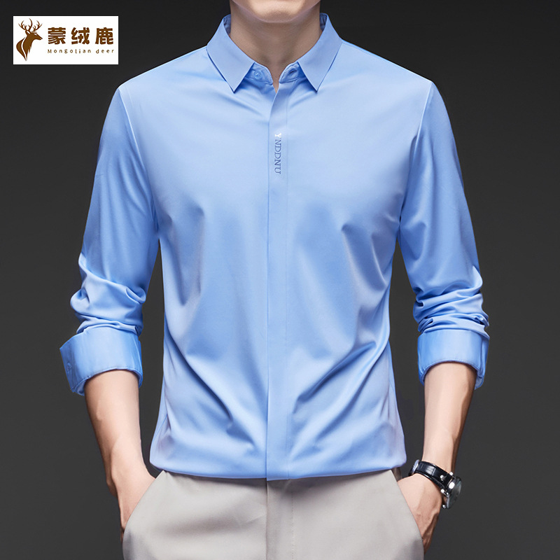 氷糸弾力長袖シャツ男性秋ビジネスカジュアル百合襟抗シワ無痕シャツ男性服