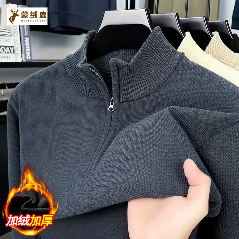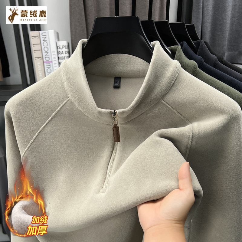 高档男士百搭长袖卫衣冬季新款加绒加厚半拉链立领保暖男士打底衫