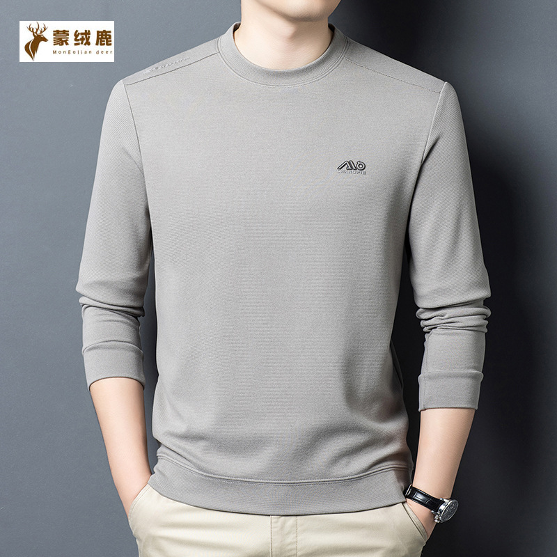 圆领亲肤感男士长袖t恤双面德绒保暖上衣加厚内搭打底衫品牌卫衣