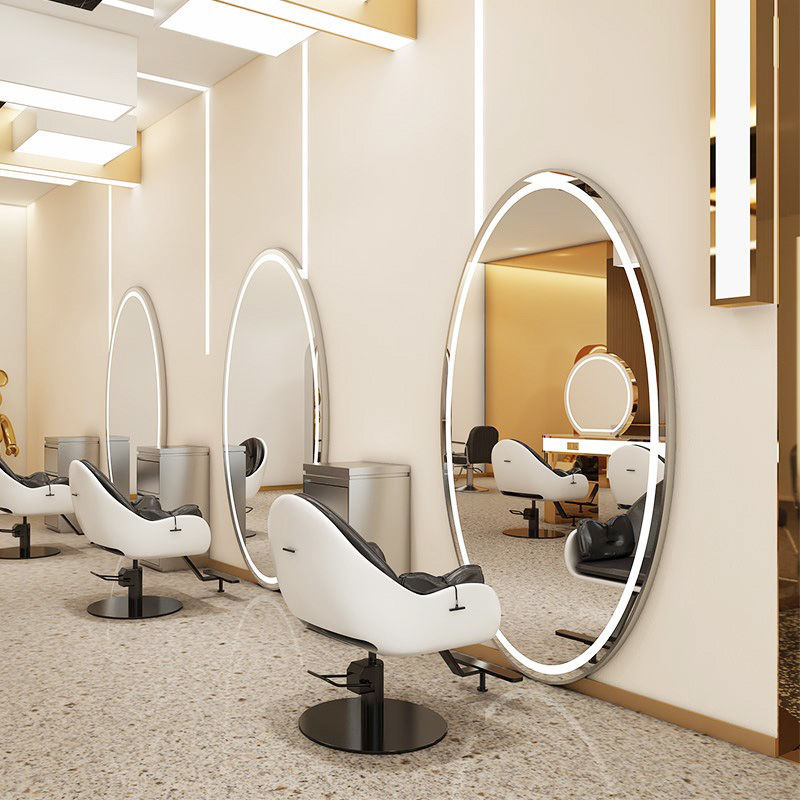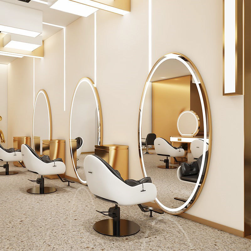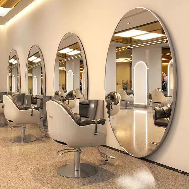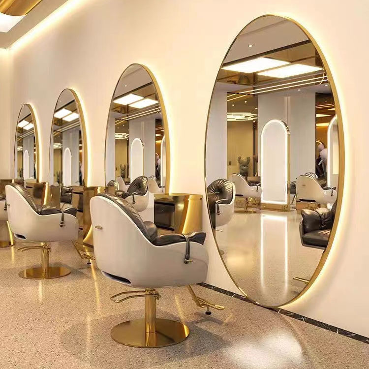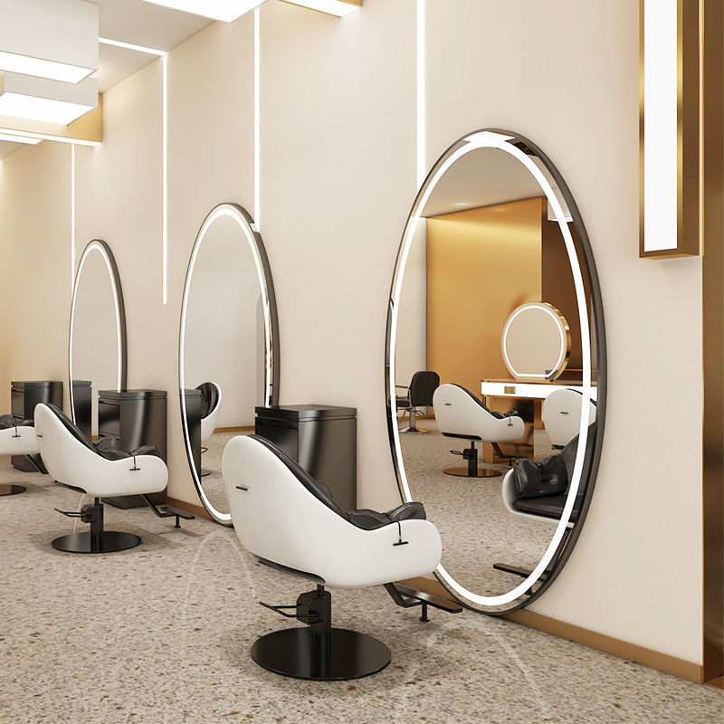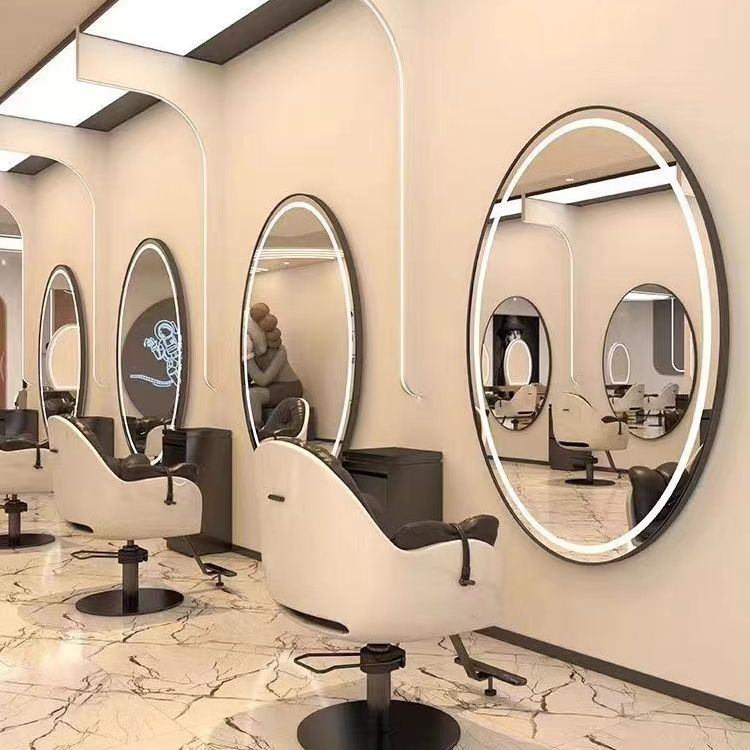 网红美发店镜子带灯发廊专用理发镜台剪发镜壁挂式落地理发店镜子