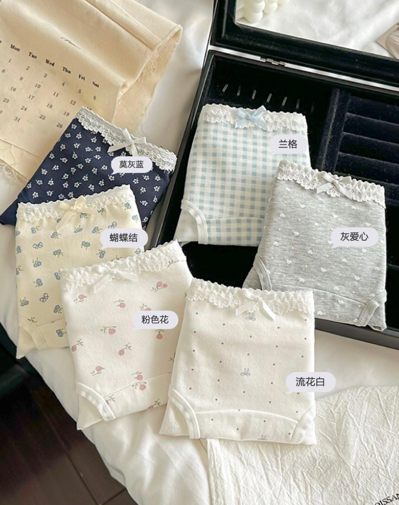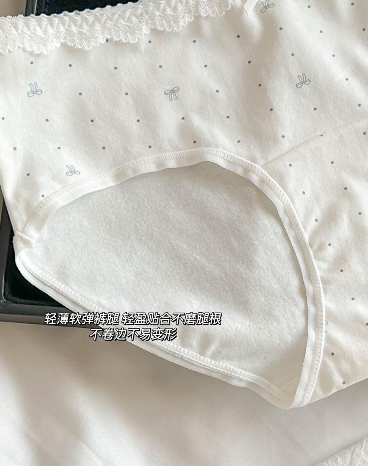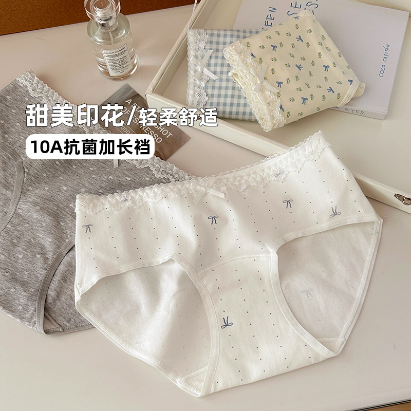 甜美10A抑菌少女纯棉内裤透气加长底裆可爱印花中腰包臀三角裤女