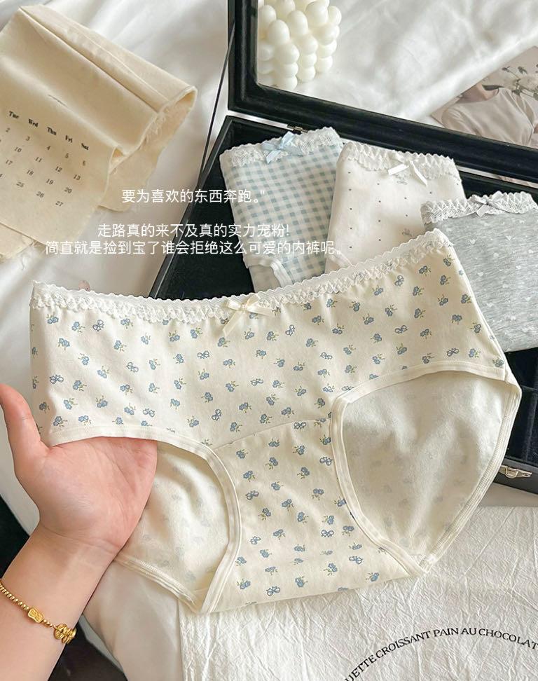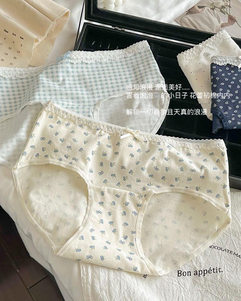 碎花轻薄纯欲风花蕾裤中腰包臀舒适透气亲肤吸湿女士三角内裤学生