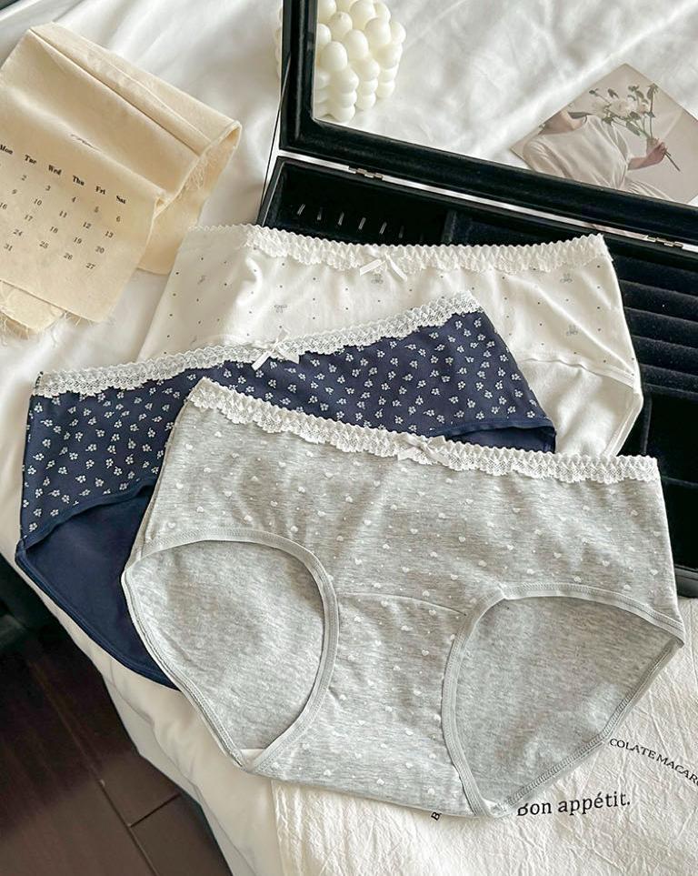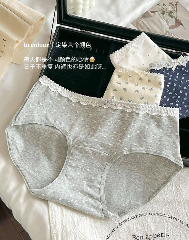 小清新透气女士三角裤棉抑菌加长档碎花波点内裤中腰加长纯棉裤