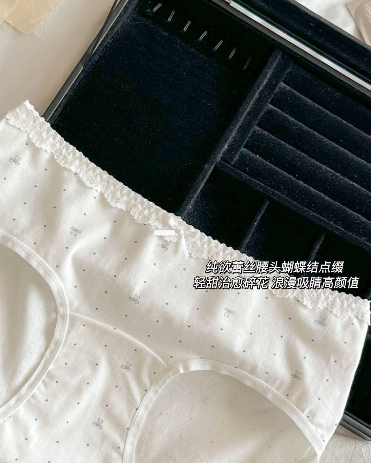 法式复古风纯欲蕾丝边女生内裤冰丝内裤女纯棉裆蝴蝶结少女三角裤