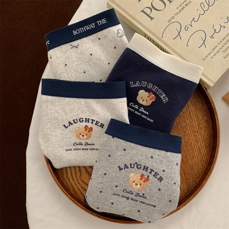 蜜桃朵娜英伦学院风百搭纯棉小熊印花舒适棉裆中腰包臀三角内裤女