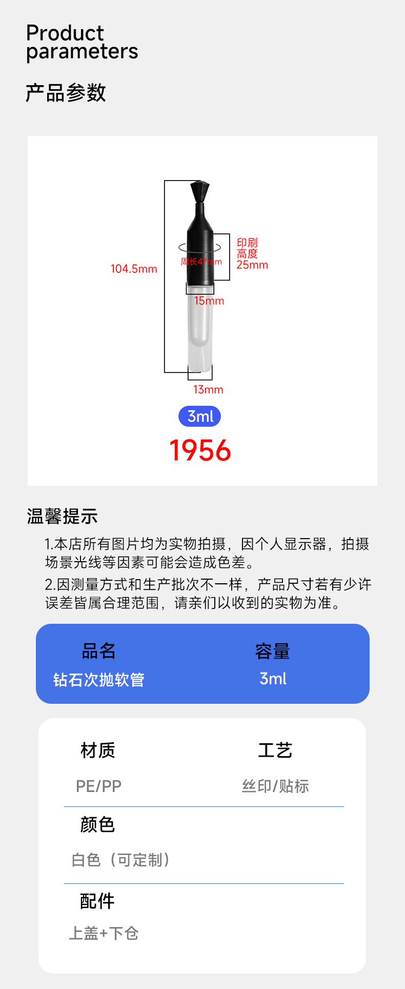 规格型号 2ml;颜色随机发;PP,3ml;颜色随机发;PP