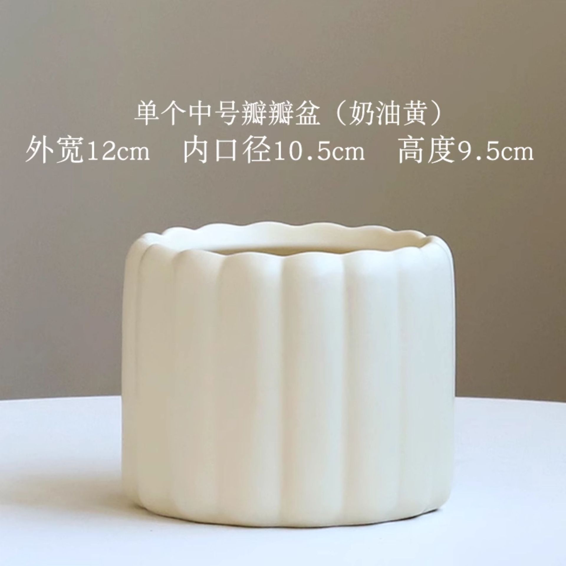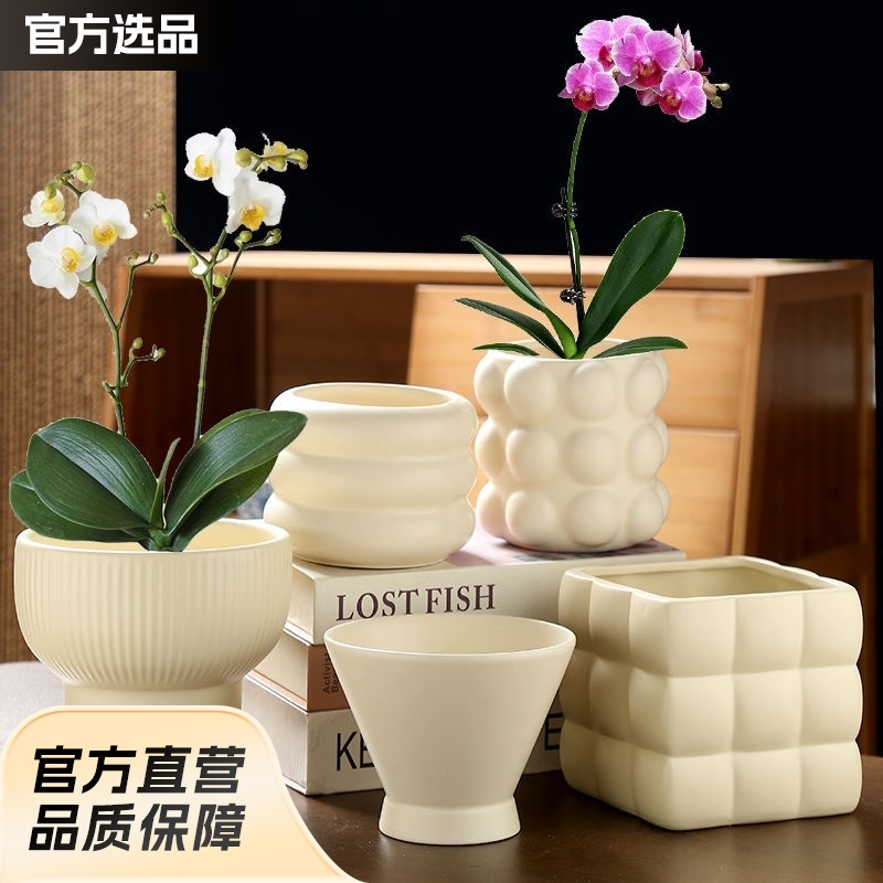 奶油风陶瓷花盆植物家用盆栽精致白色ins轻奢创意兰花多肉绿植盆