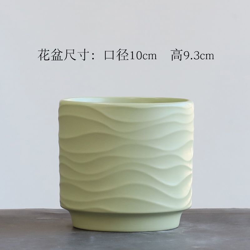 新款波纹简约陶瓷花盆小中大ins风带托盘家用多肉蝴蝶兰吊兰