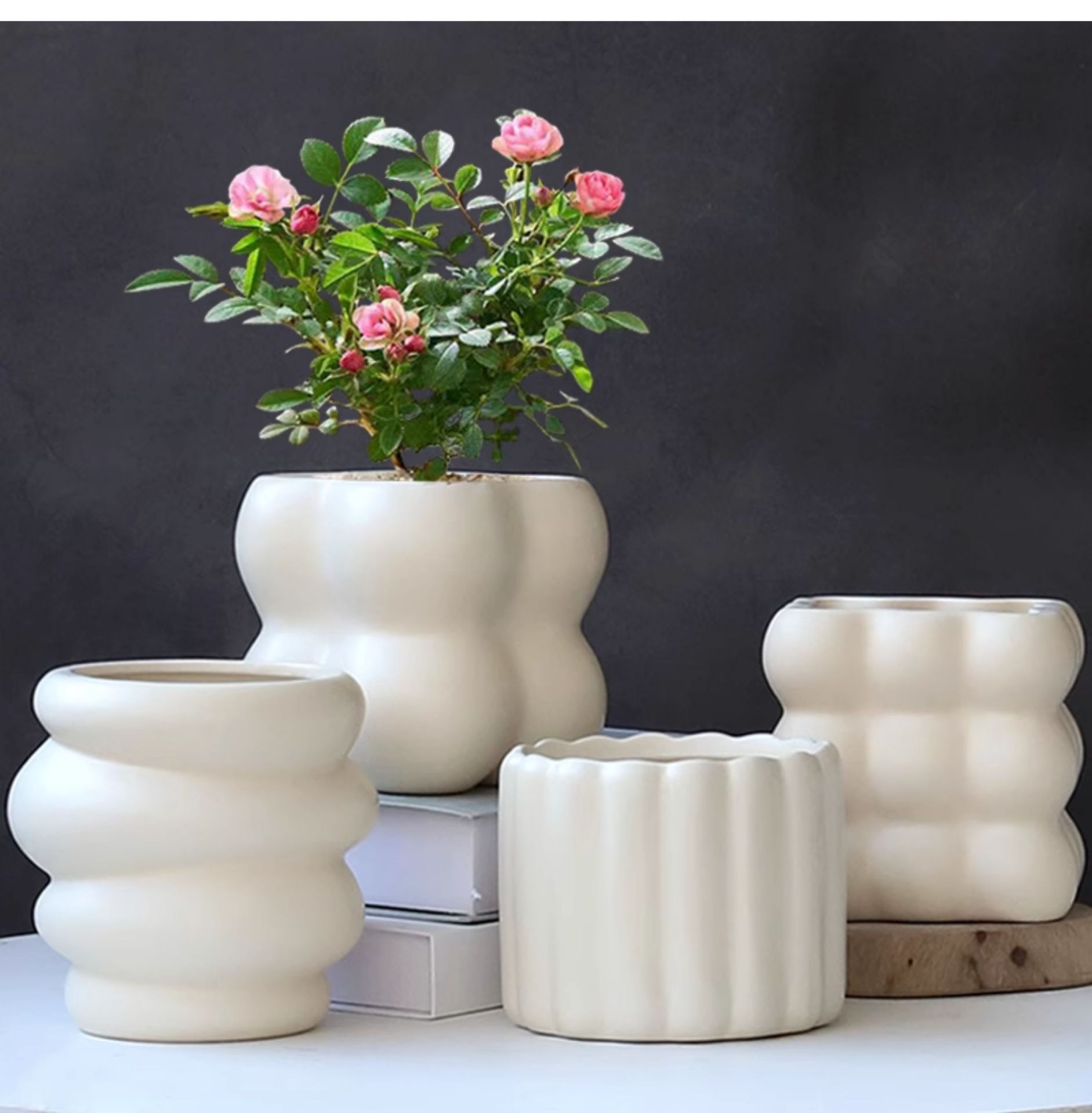 陶器の植木鉢、インスタ映え、軽やかな高級感、クリーム系、家庭用、シンプル、蘭、胡蝶蘭、観葉植物、鉢植え