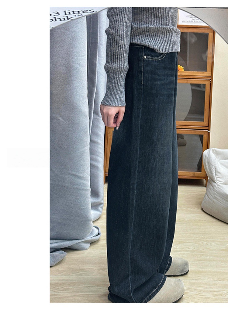 新款大码加绒复古蓝牛仔裤子女胖mm显瘦梨型身材高腰直筒阔腿裤