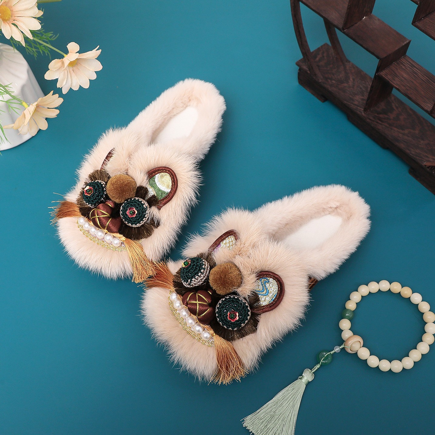 工复古虎头鞋春季新款平底国风非遗手工虎头鞋新中式绣花拖鞋居家