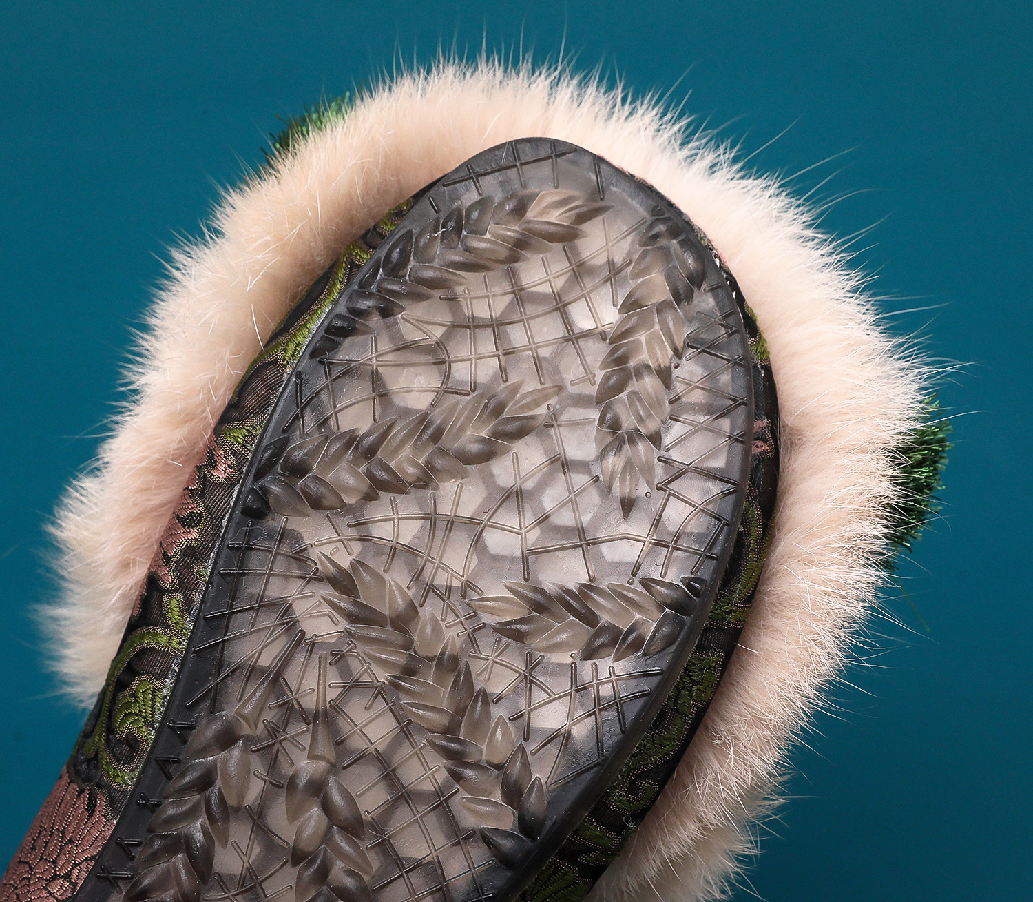 沙棕色虎头棉鞋真毛虎头女鞋牛筋底绣花鞋中国风非遗手工布鞋
