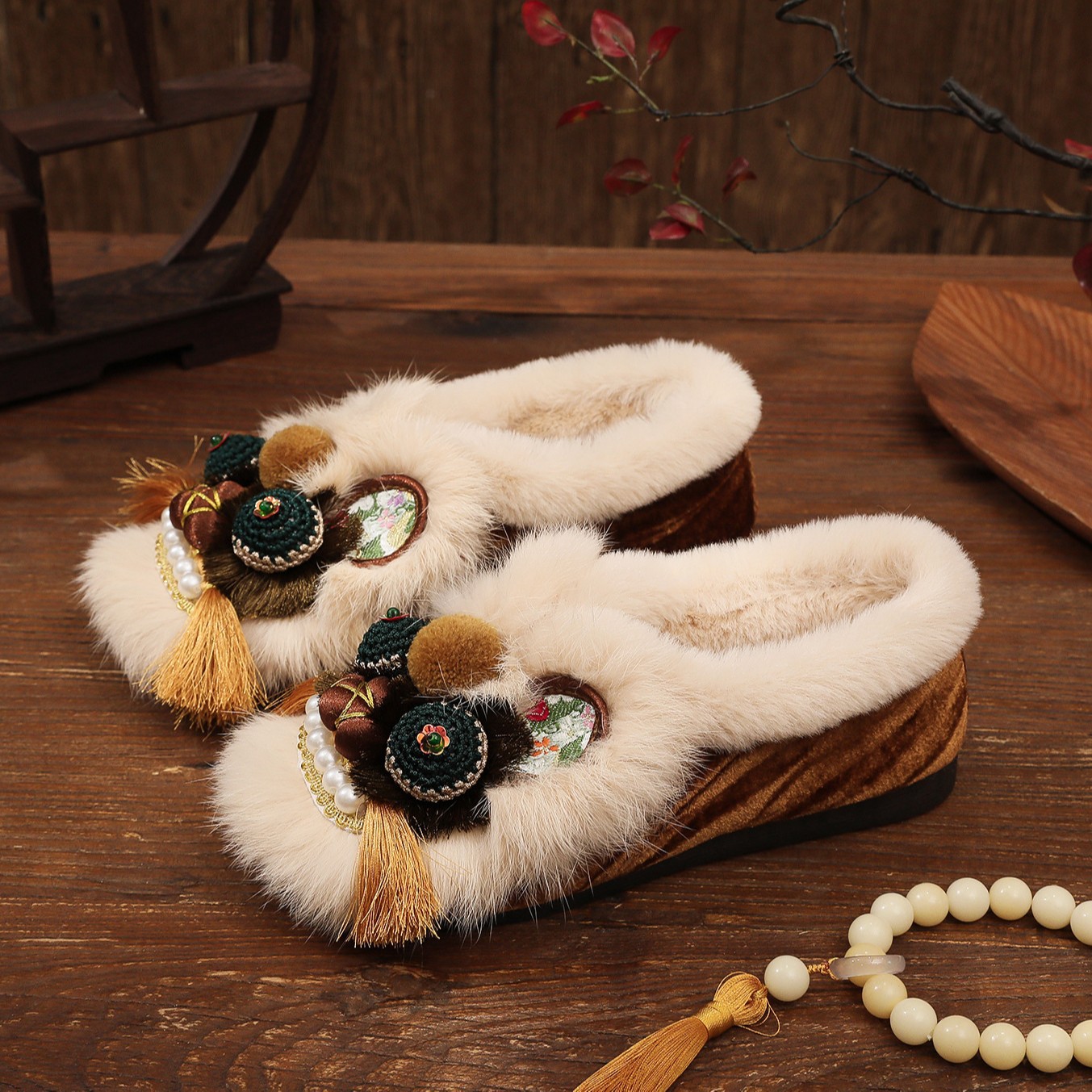 布靴成人虎頭靴2024新型国潮復古民族風平底婦人スリッパ民俗靴