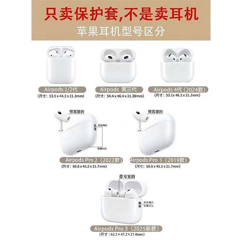 适用型号 airpods 1/2代,Airpods 3 代,Airpods pro2,Airpods 新4代(2024),AirPods Pro3(2025)