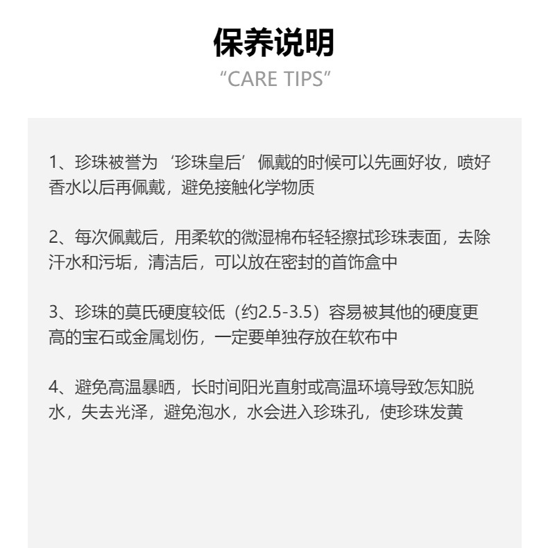 品控管理:珍珠选自原产地“诸暨珍珠”每一颗都经过严格筛选,从珍珠打孔,金属配件制作,品检打孔,包装,每个环节都有专人把控。