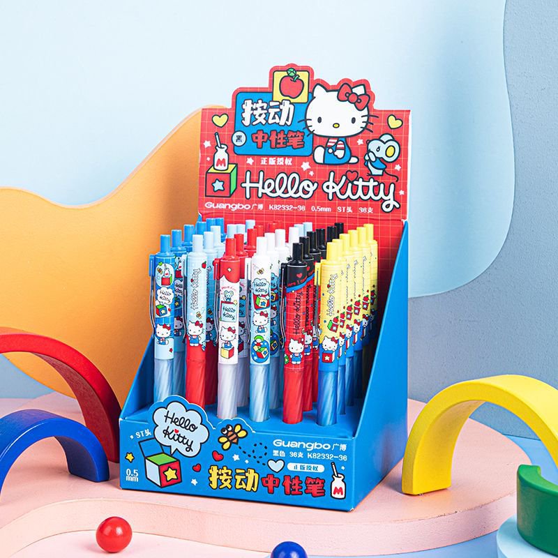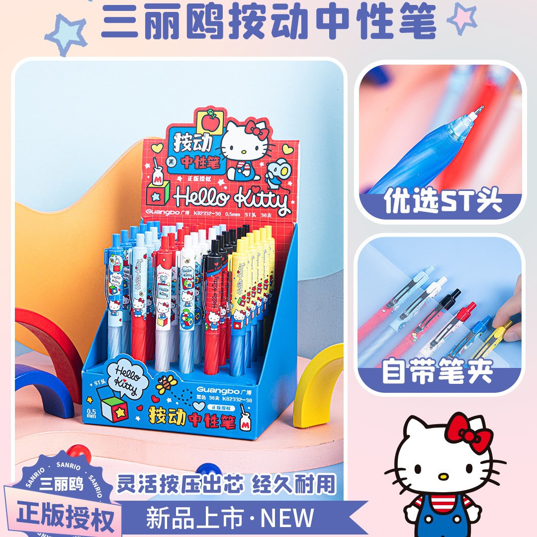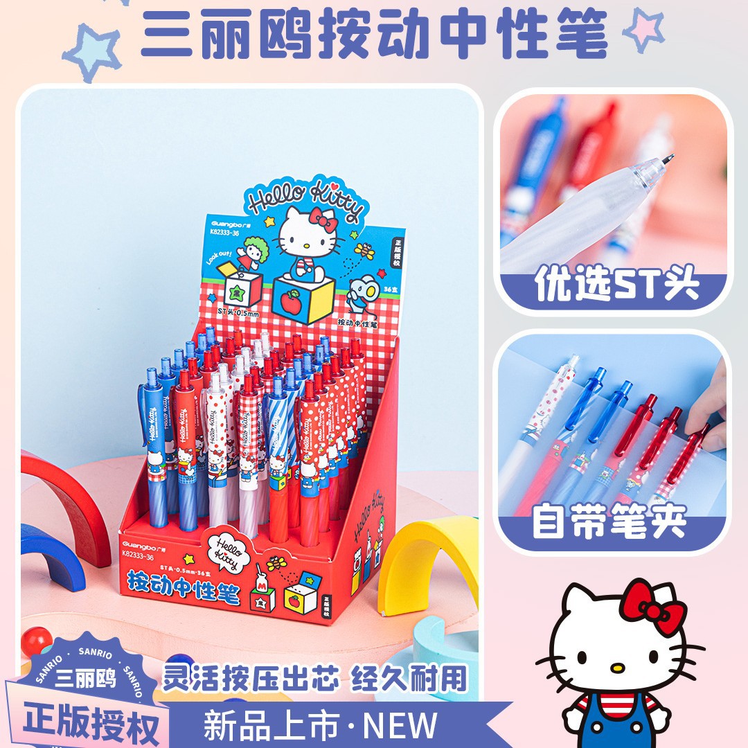 新款凯蒂猫红蓝系列按动中性笔插盒装36支装0.5mm办公签字笔书写