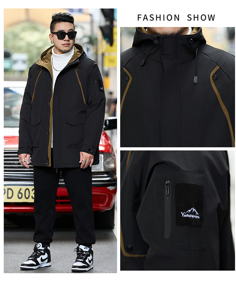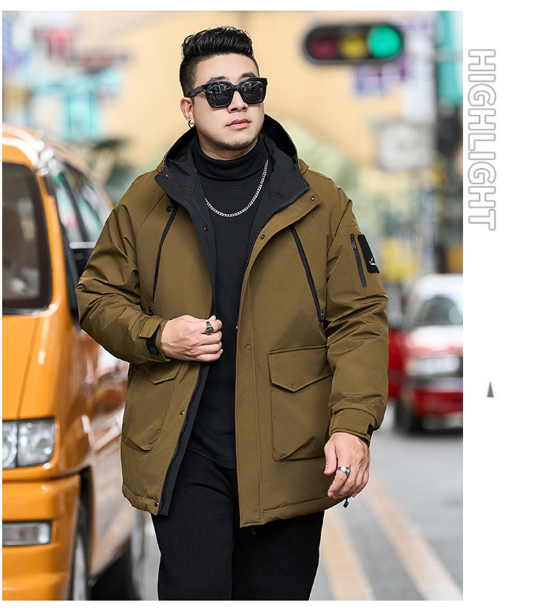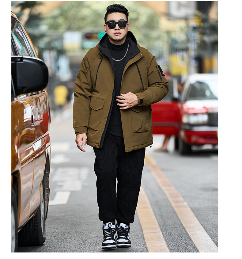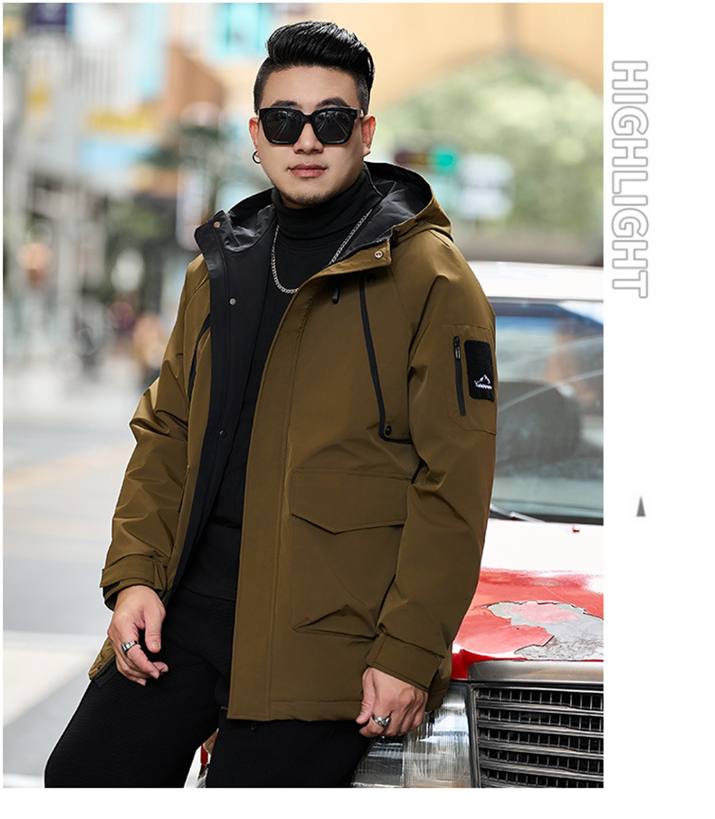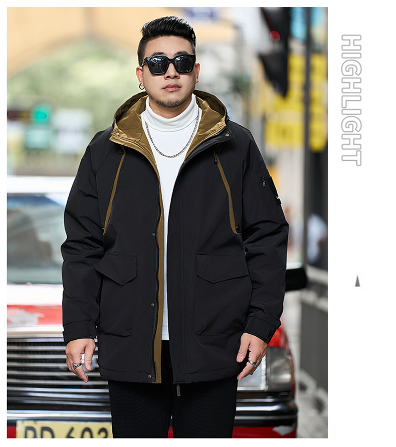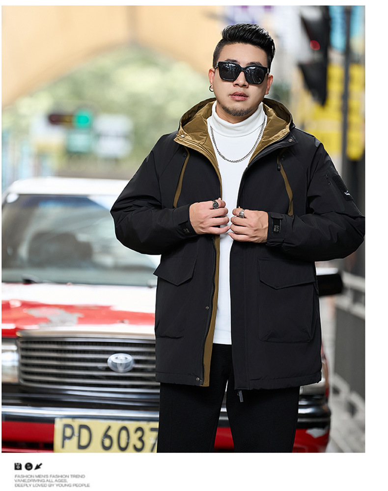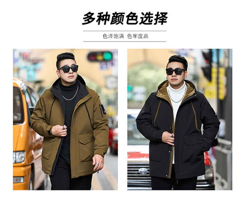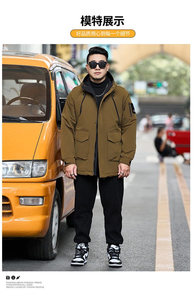 新款冬季新款男士加肥加大码中长款时尚休闲潮牌连帽加厚棉衣808