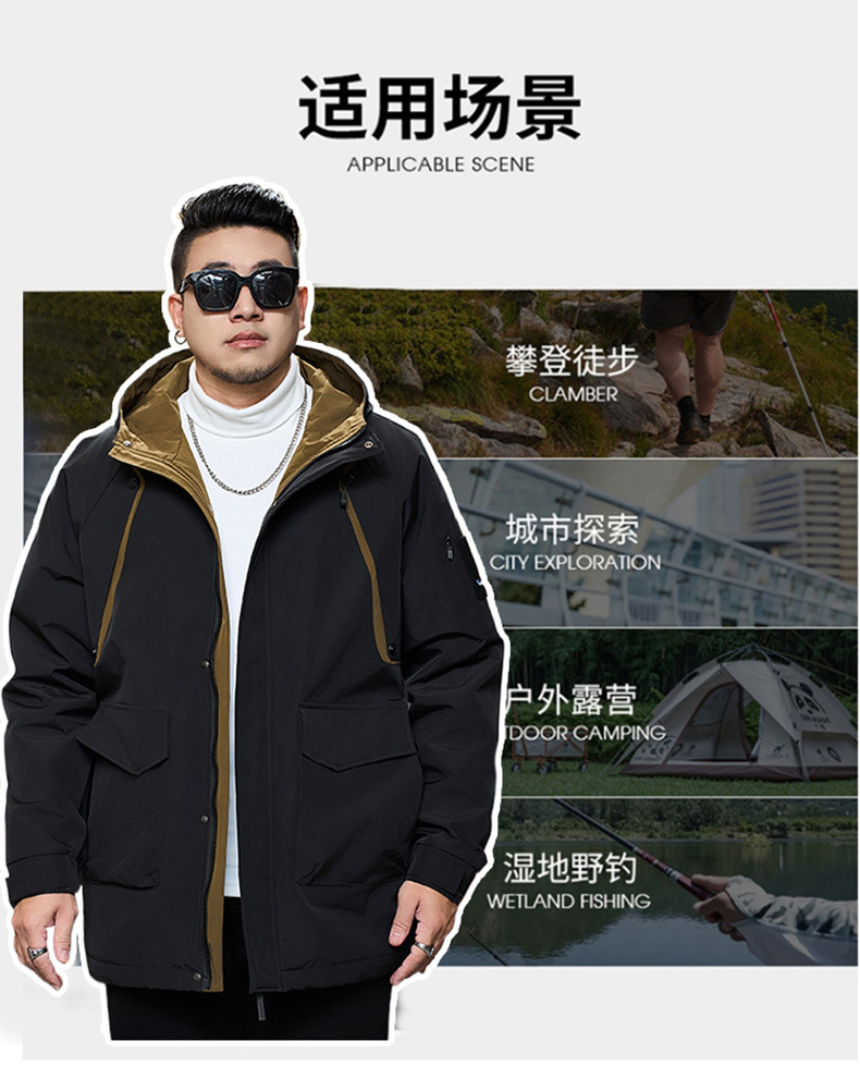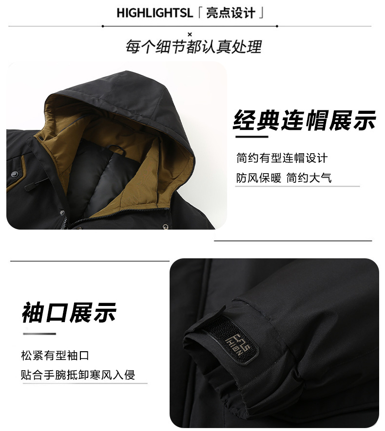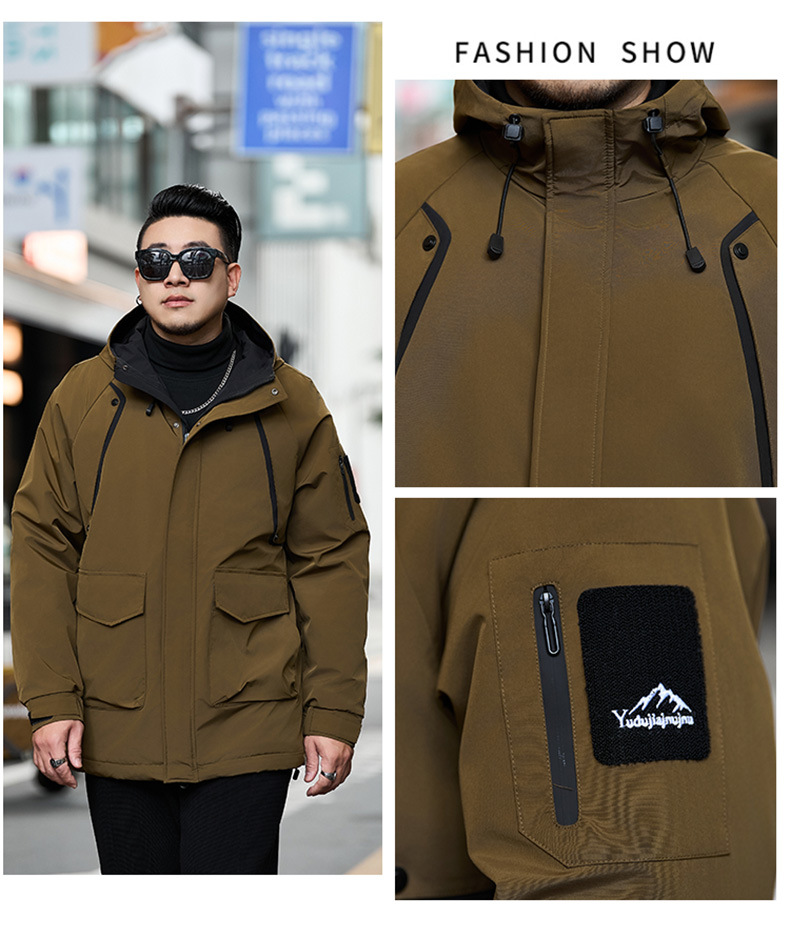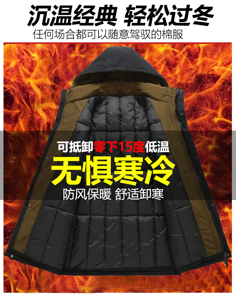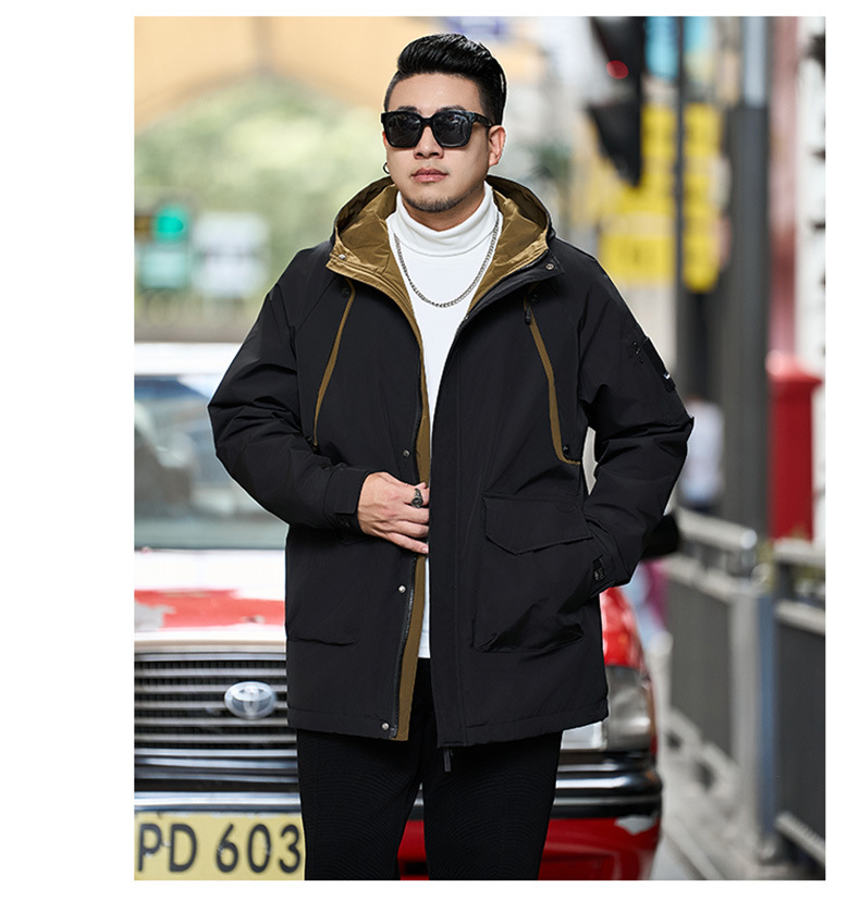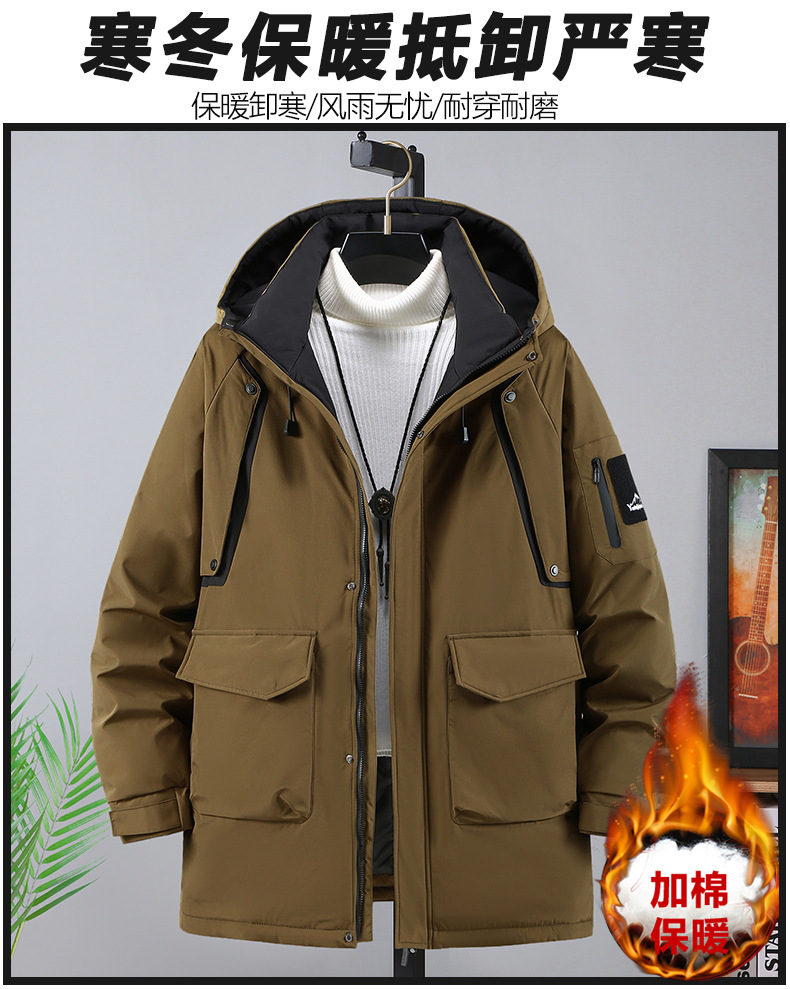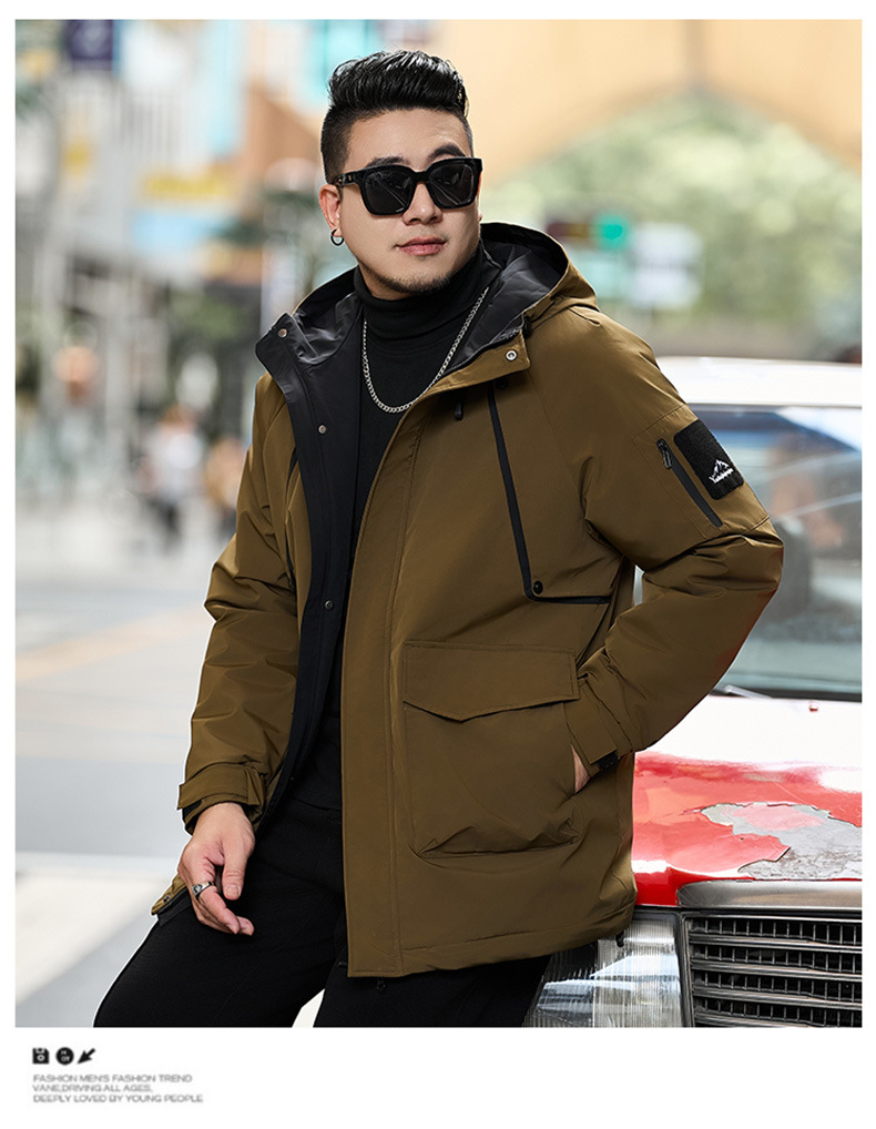 新款冬季新款男士加肥加大码中长款时尚休闲潮牌连帽加厚棉衣808
