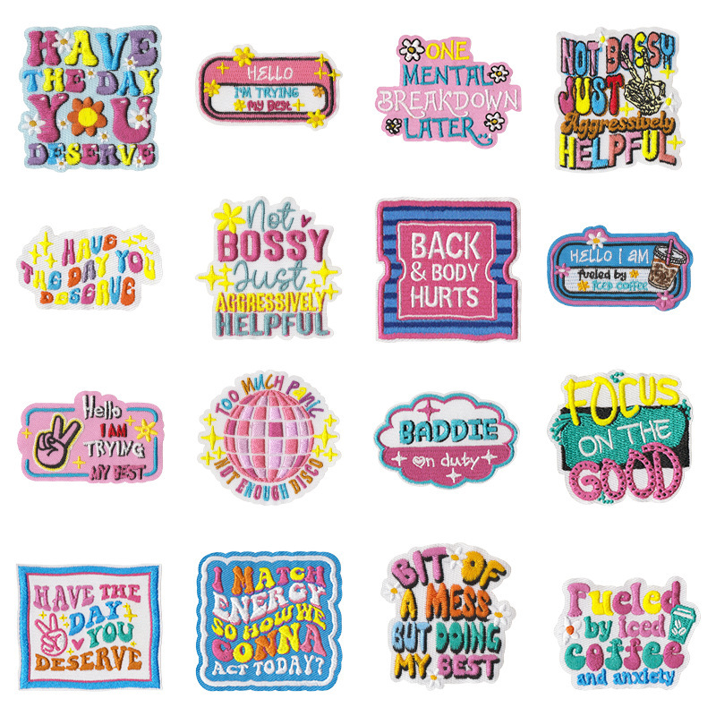 新しい組み合わせボヘミアン刺繍布貼り正エネルギー語録バッグパッチパソコン刺繍マーク英語パッチ