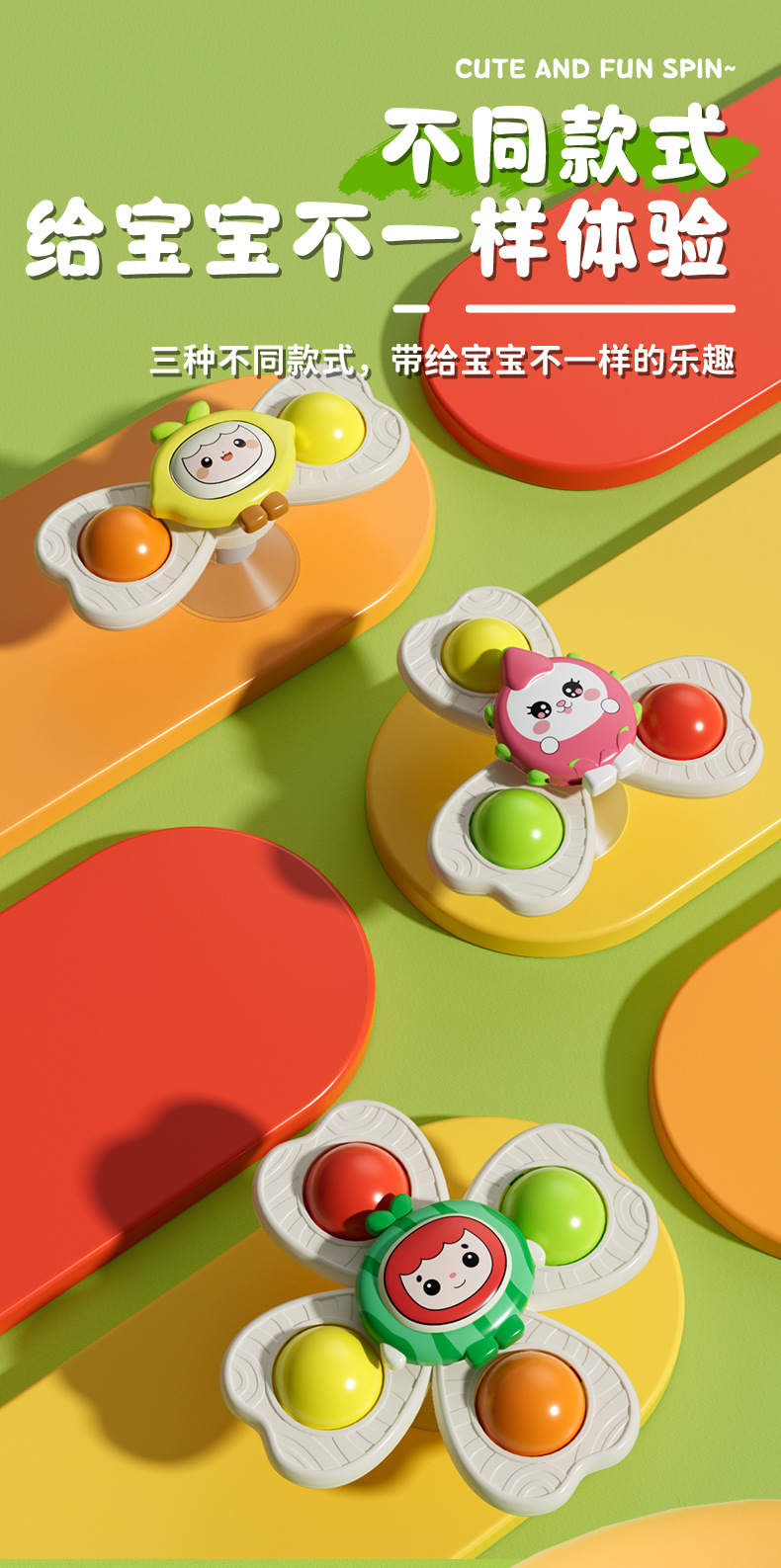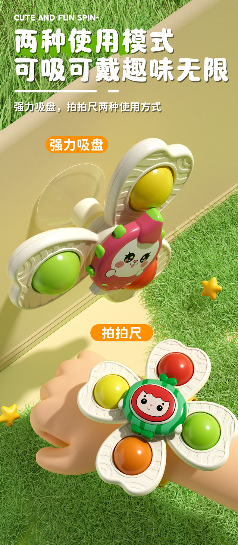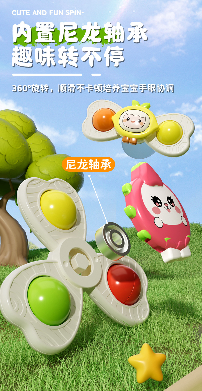 儿童卡通吸盘转转乐水果手环陀螺可啃咬手指按压趣味指尖陀螺玩具