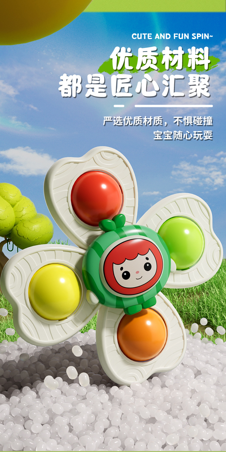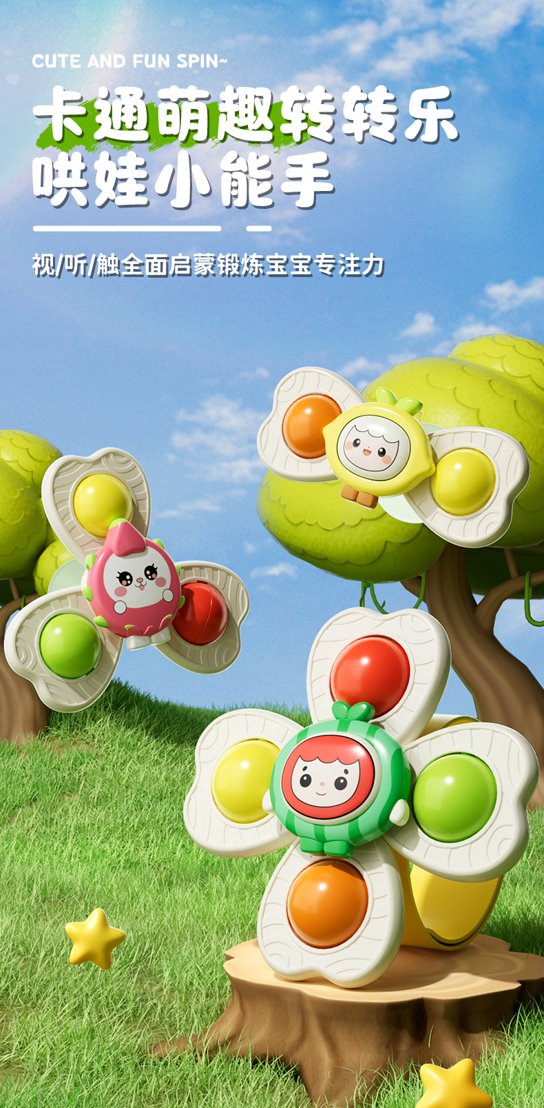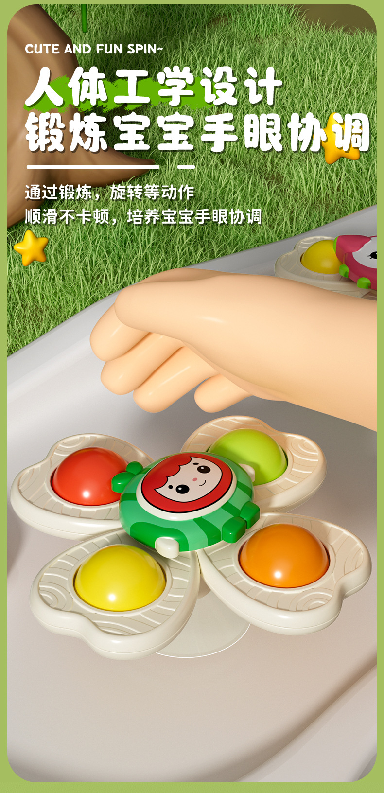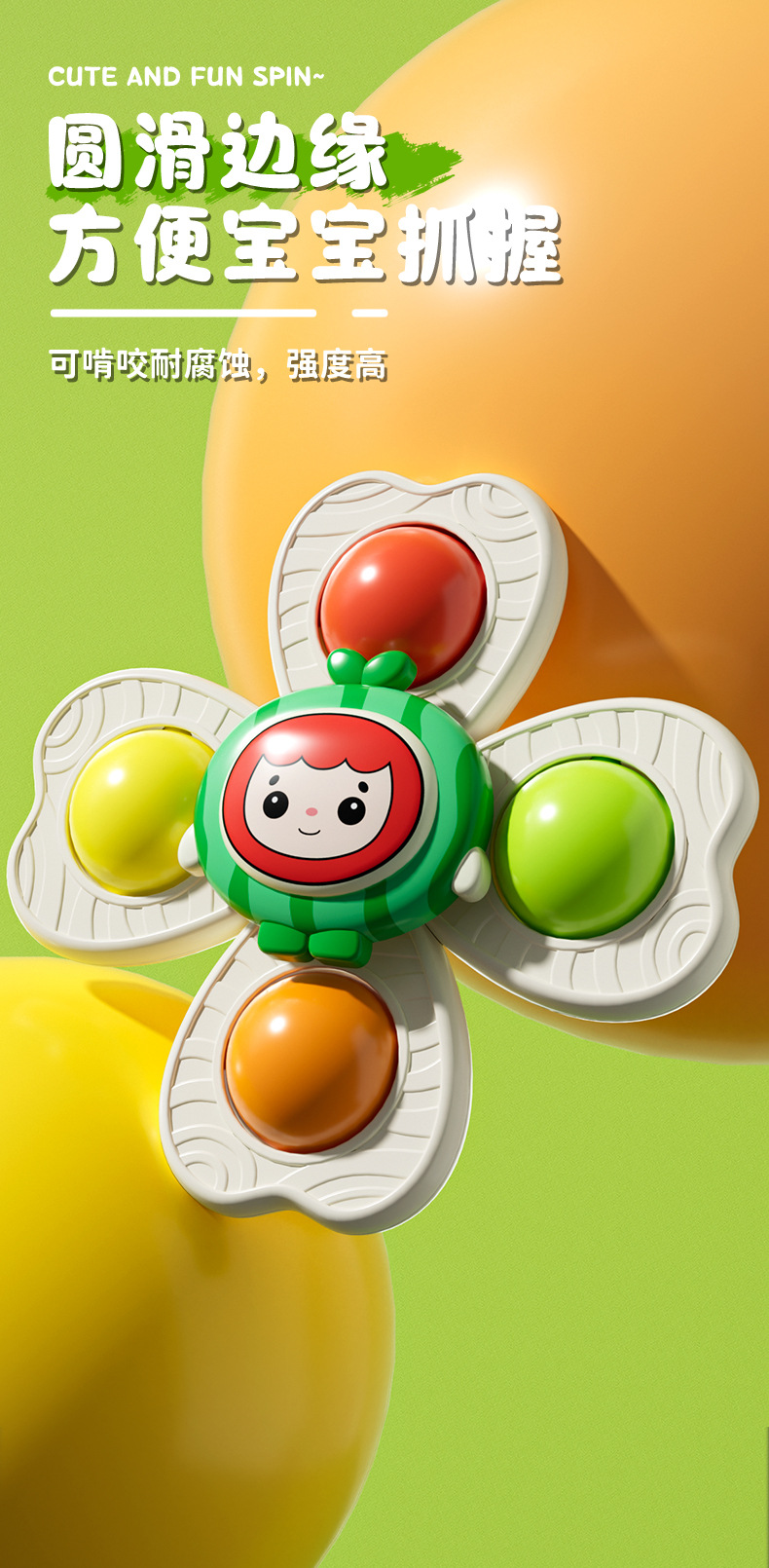 儿童卡通吸盘转转乐水果手环陀螺可啃咬手指按压趣味指尖陀螺玩具