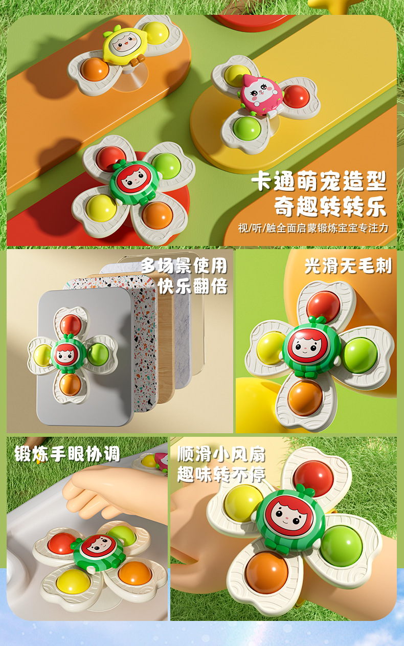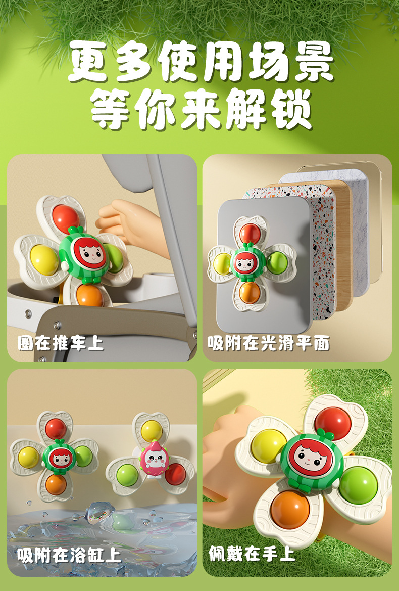 儿童卡通吸盘转转乐会转动的花朵宝宝手环陀螺玩具婴儿男孩可啃咬
