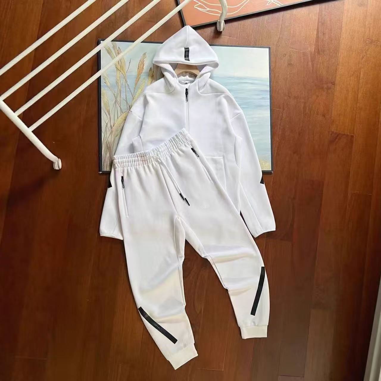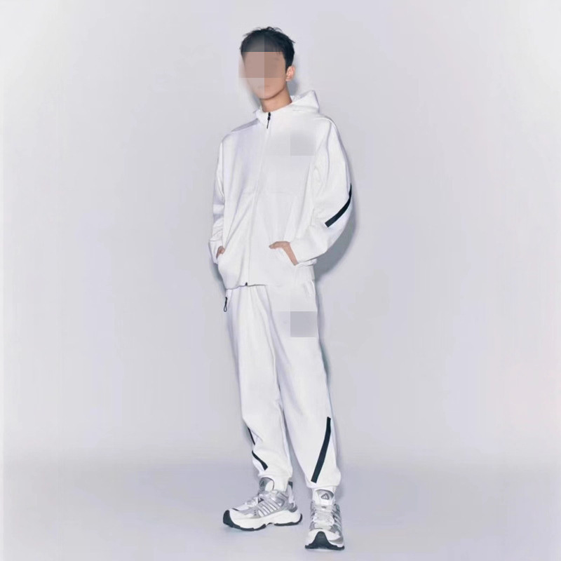 跨境25男女春秋反光条针织连帽拉链衫运动休闲套装外套754卫裤762