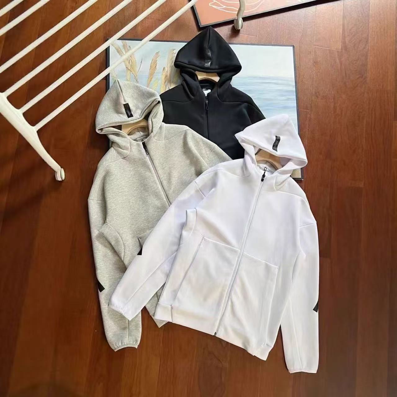 クロスボーダーコラボレーションの風行者セット、欧米の芸能人ヒップホップスタイルのフード付きスポーツカジュアルジャケット、防風コート、トレンドアイテム