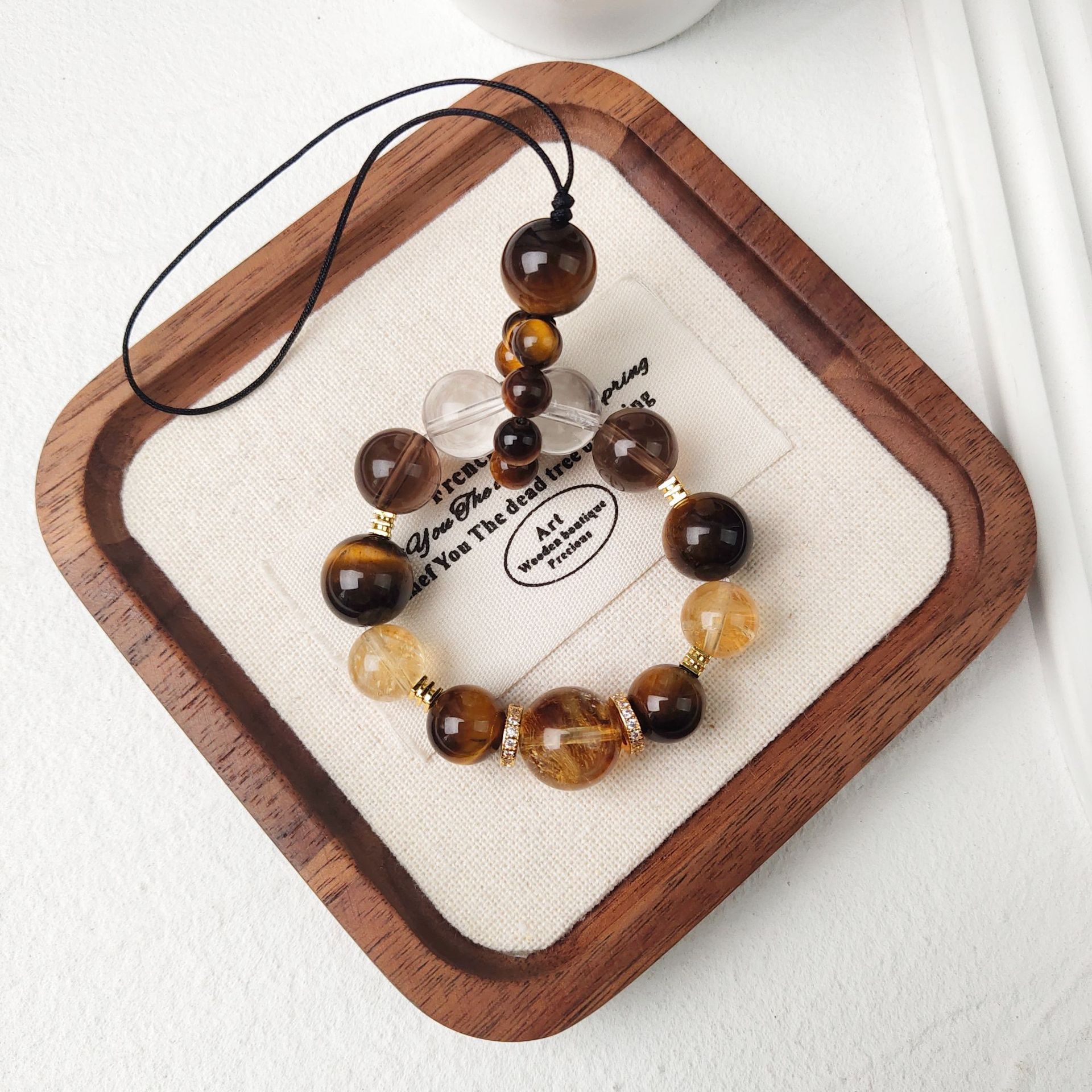 厂家批发天然黄水晶10mm金虎眼石白水晶设计手机挂饰女款挂饰饰品