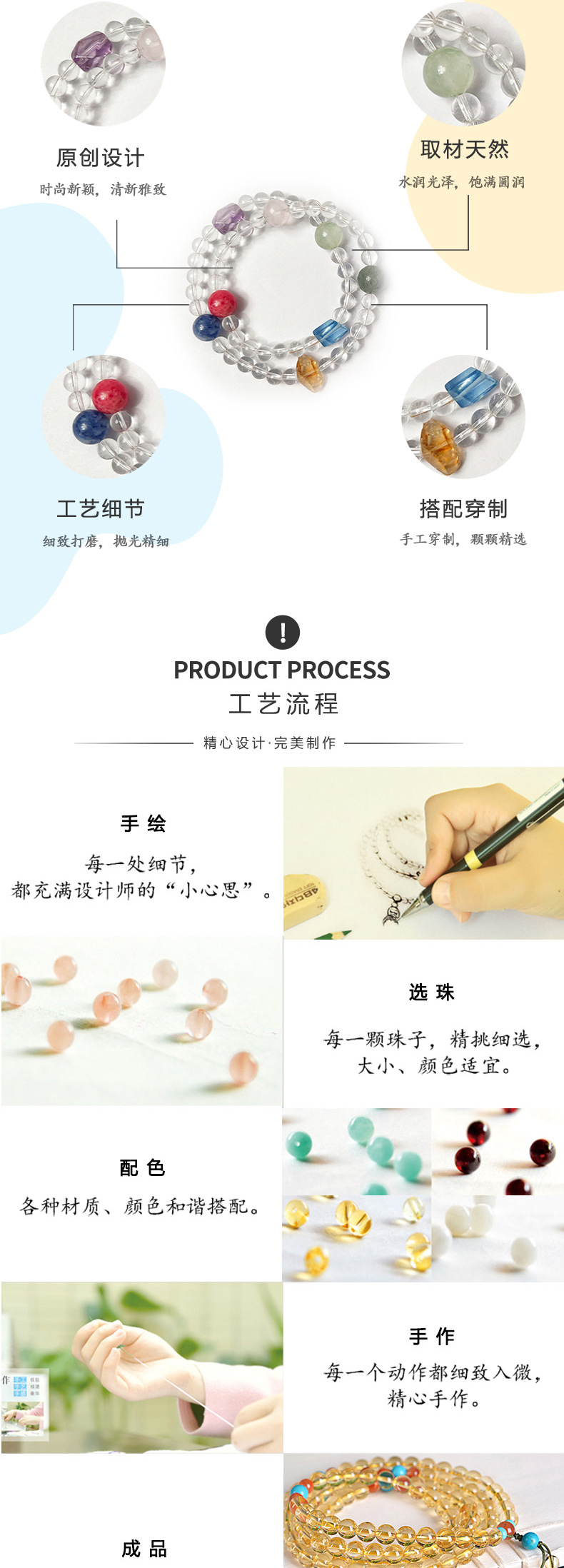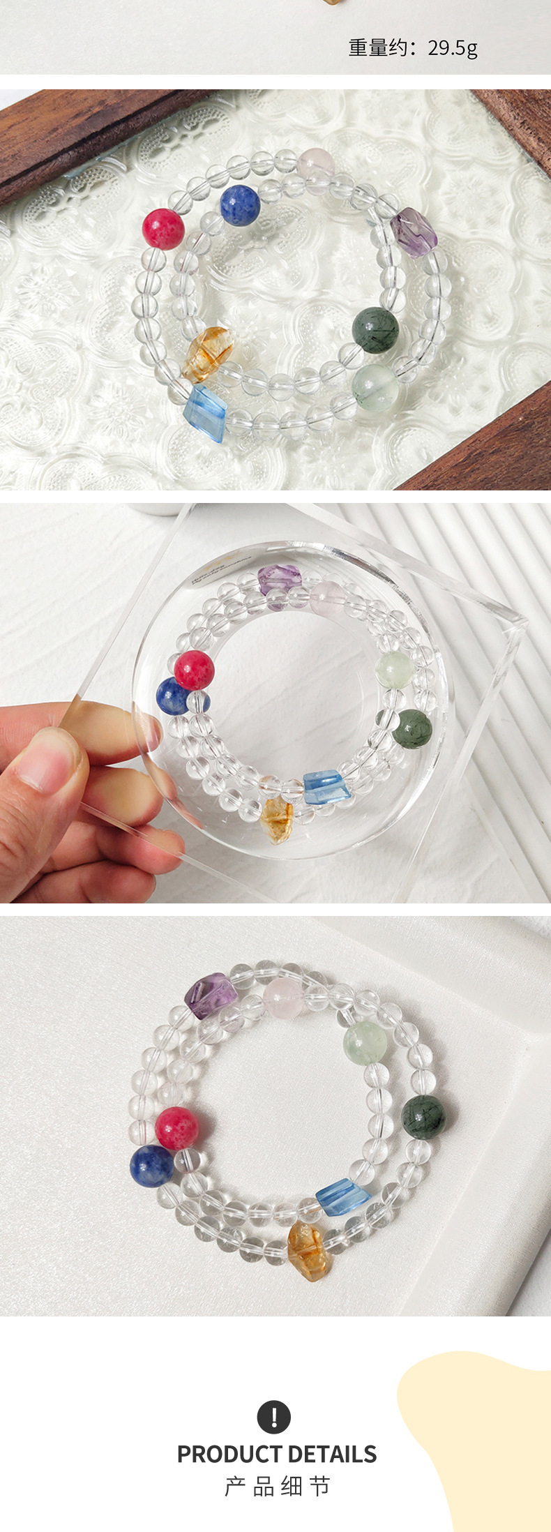 天然白水晶6mm圆珠手链配多宝双圈手串饰品ins潮送女友生日礼物