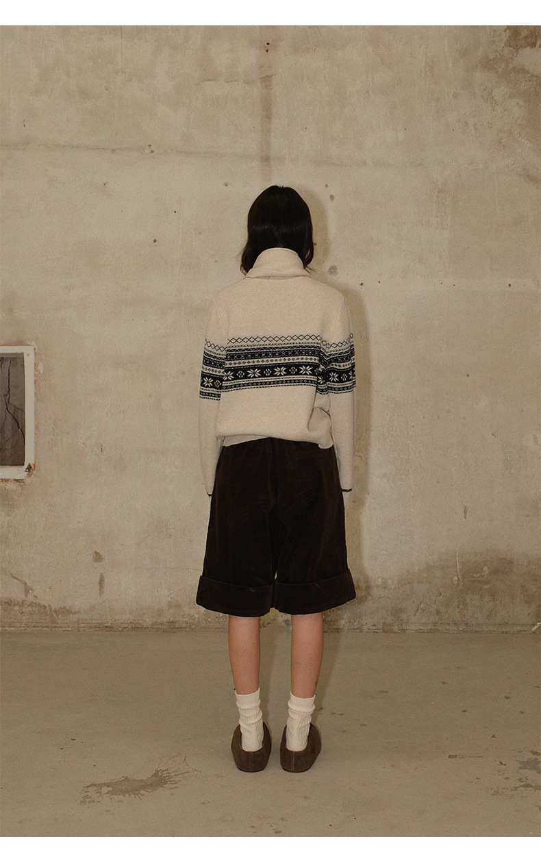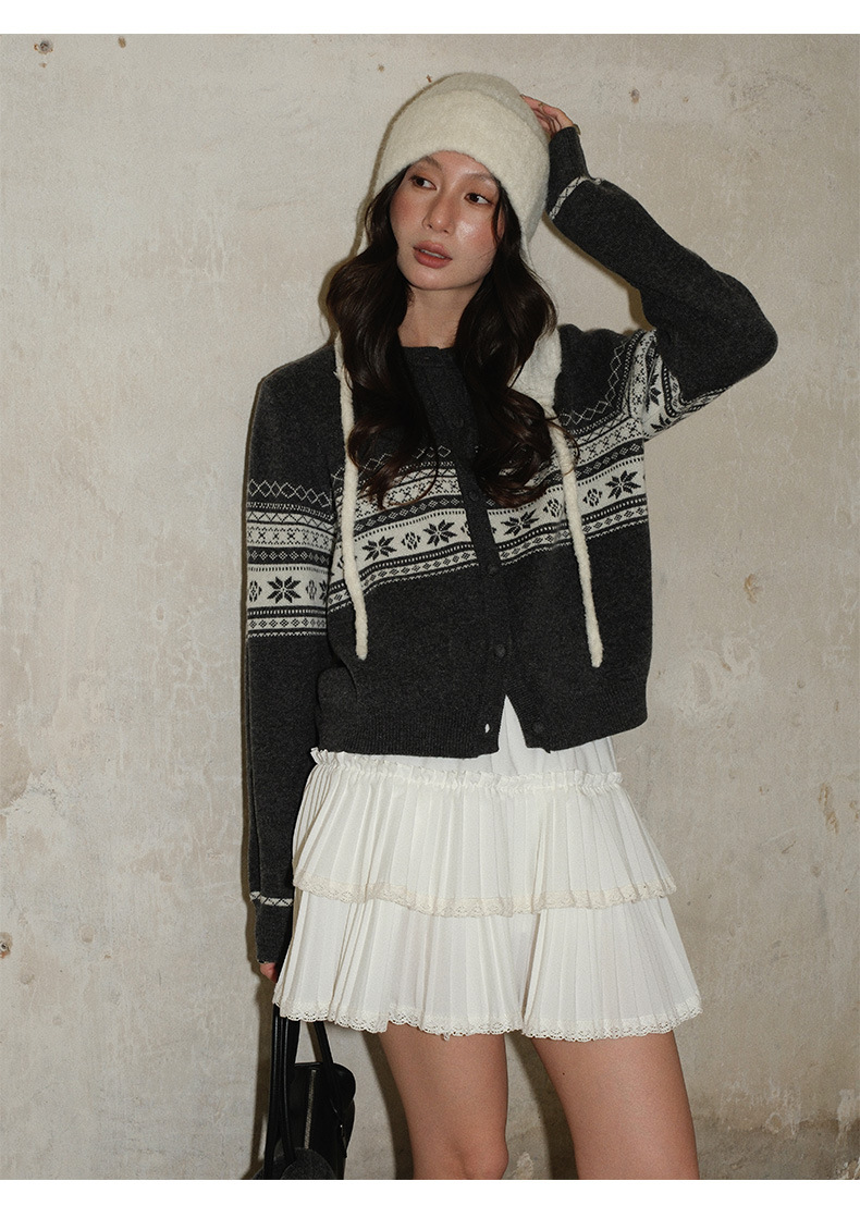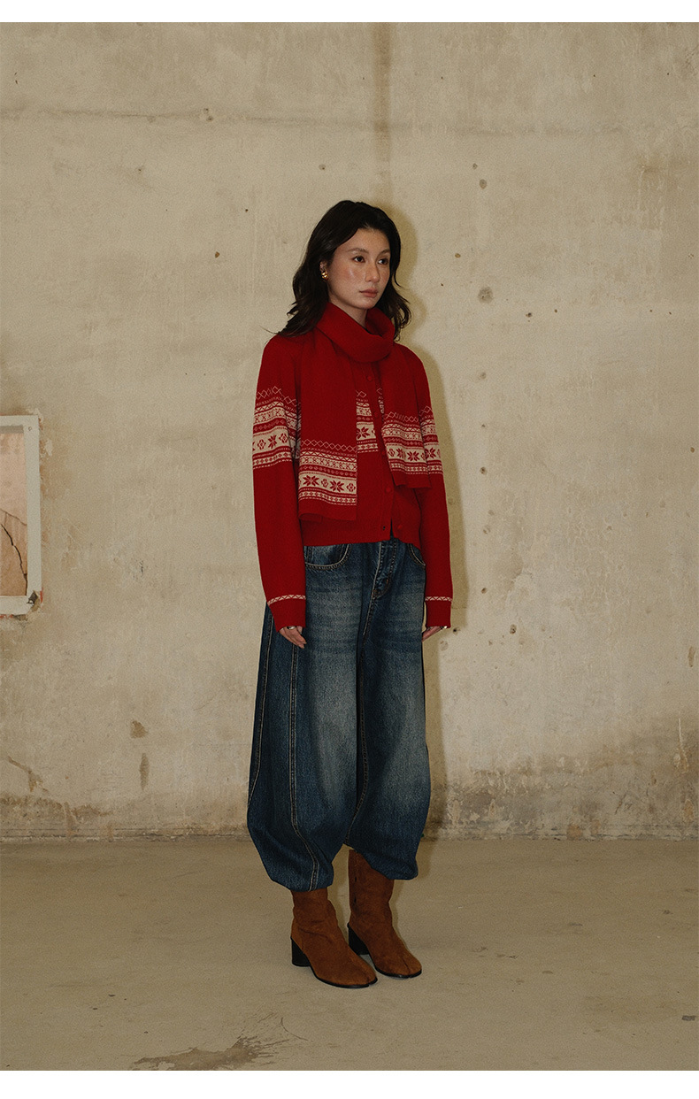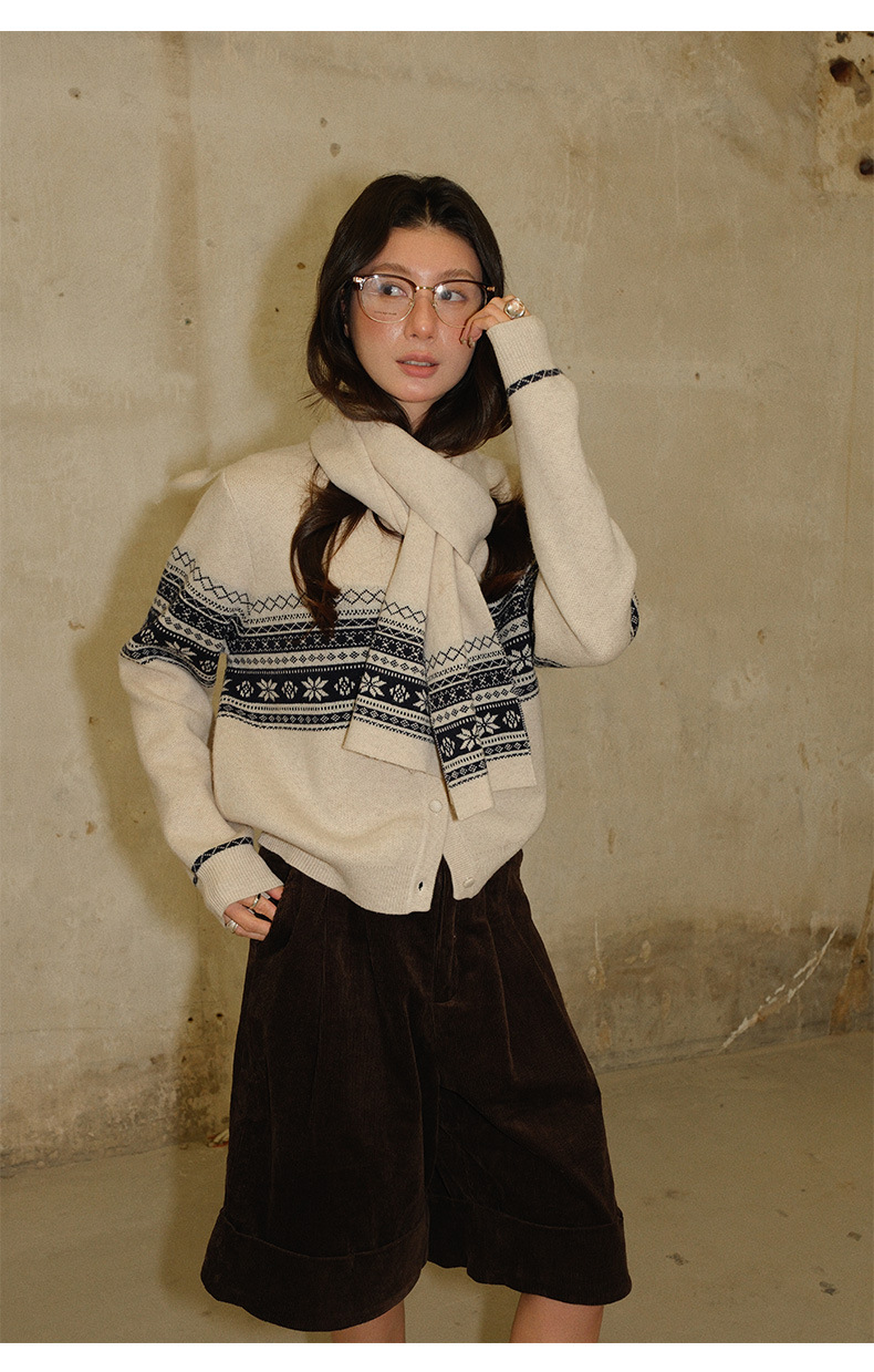 NEIHE内赫费尔岛超细澳羊毛提花慵懒毛衣开衫女冬季配围巾257356