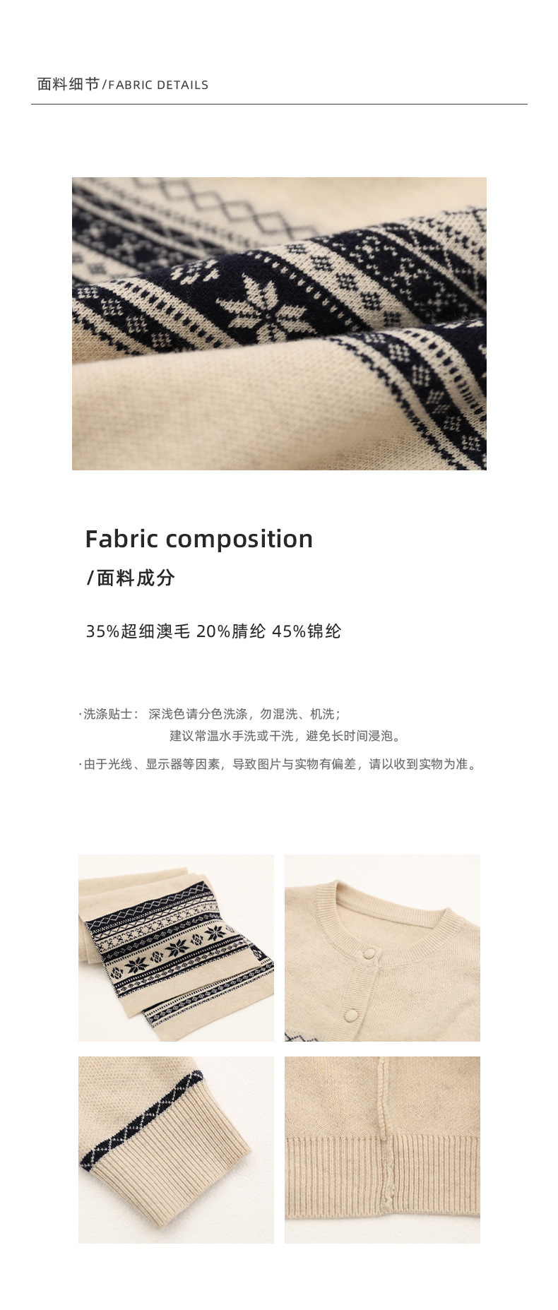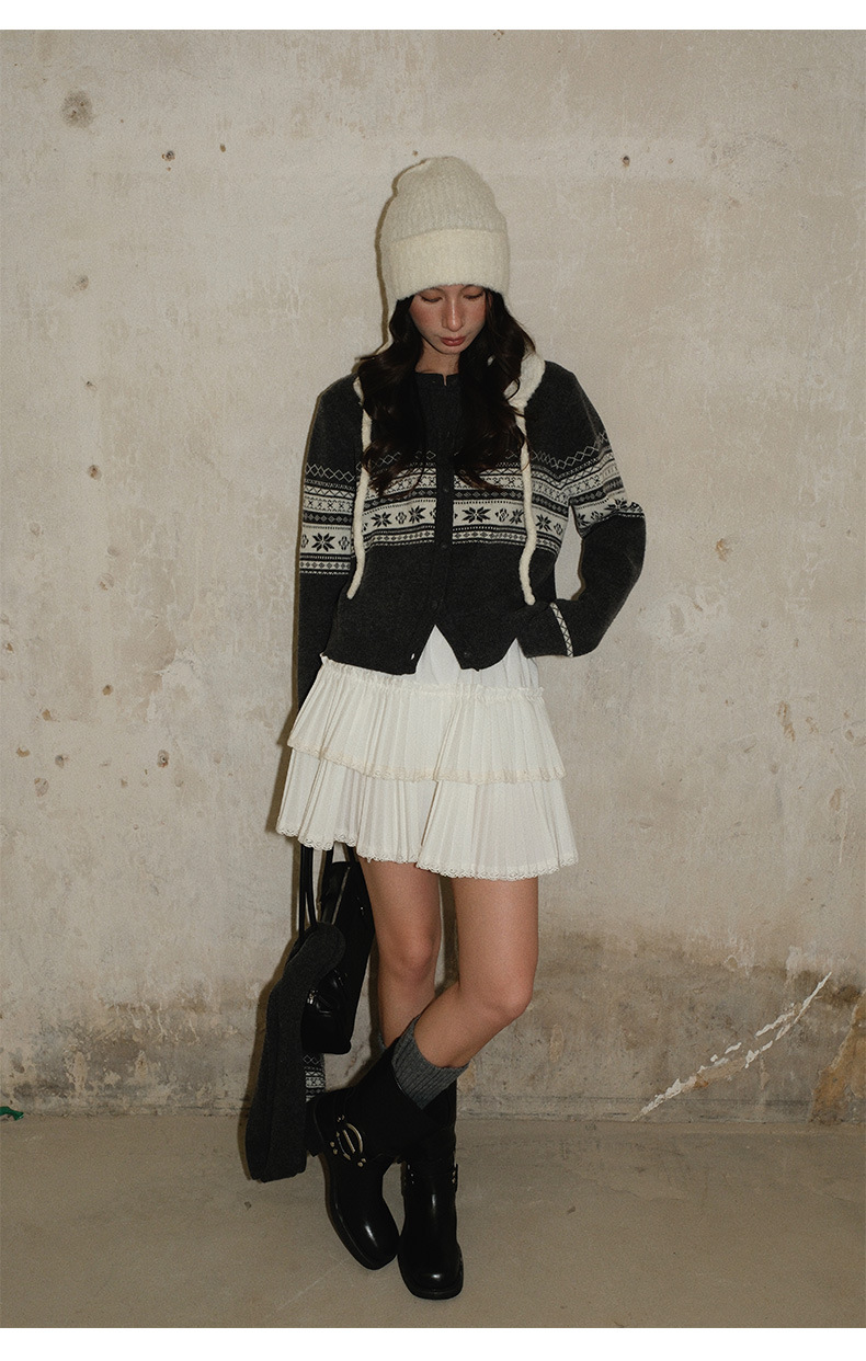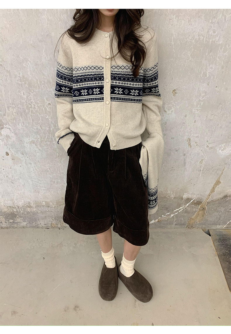 NEIHE内赫费尔岛超细澳羊毛提花慵懒毛衣开衫女冬季配围巾257356