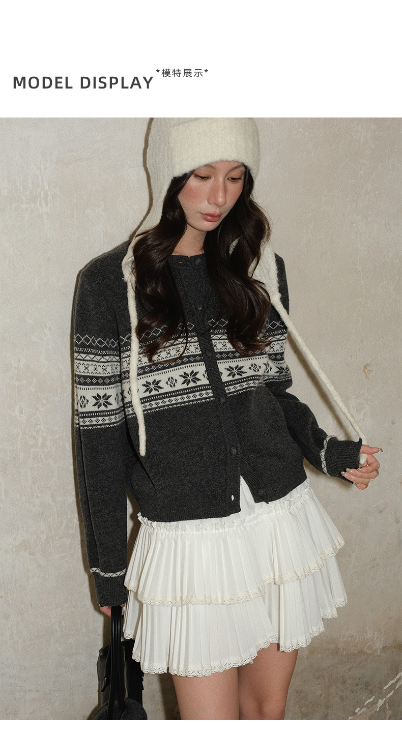 NEIHE内赫2025年复古花纱木耳边费尔岛毛衣开衫女秋冬新款257361