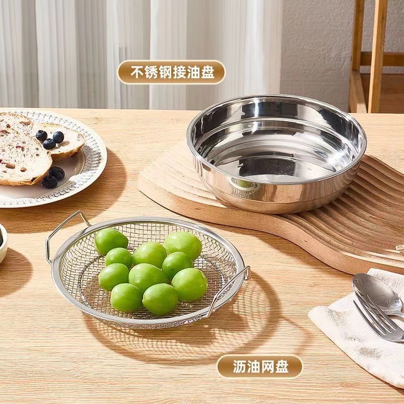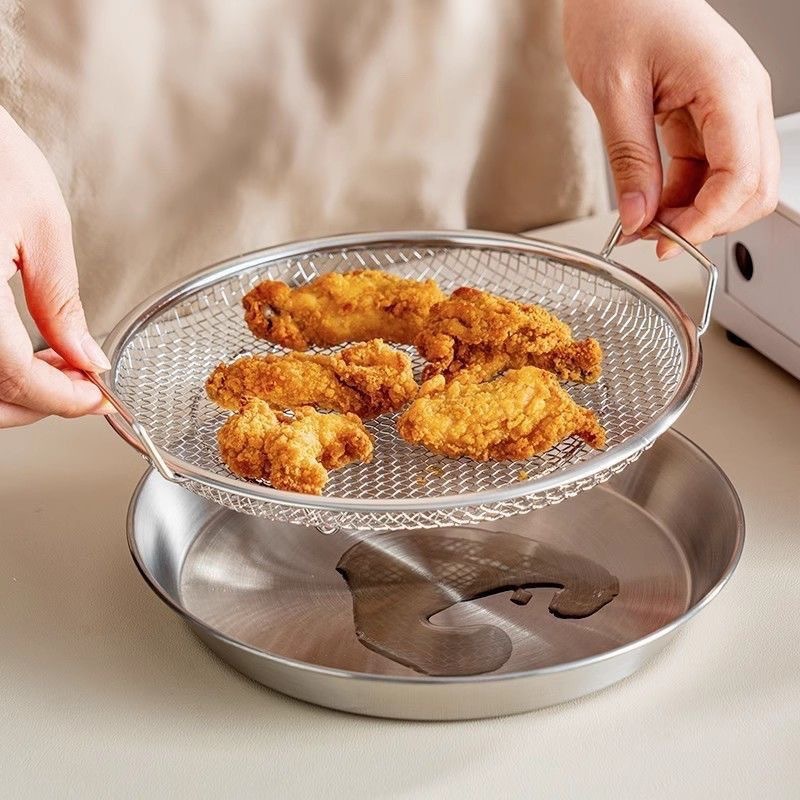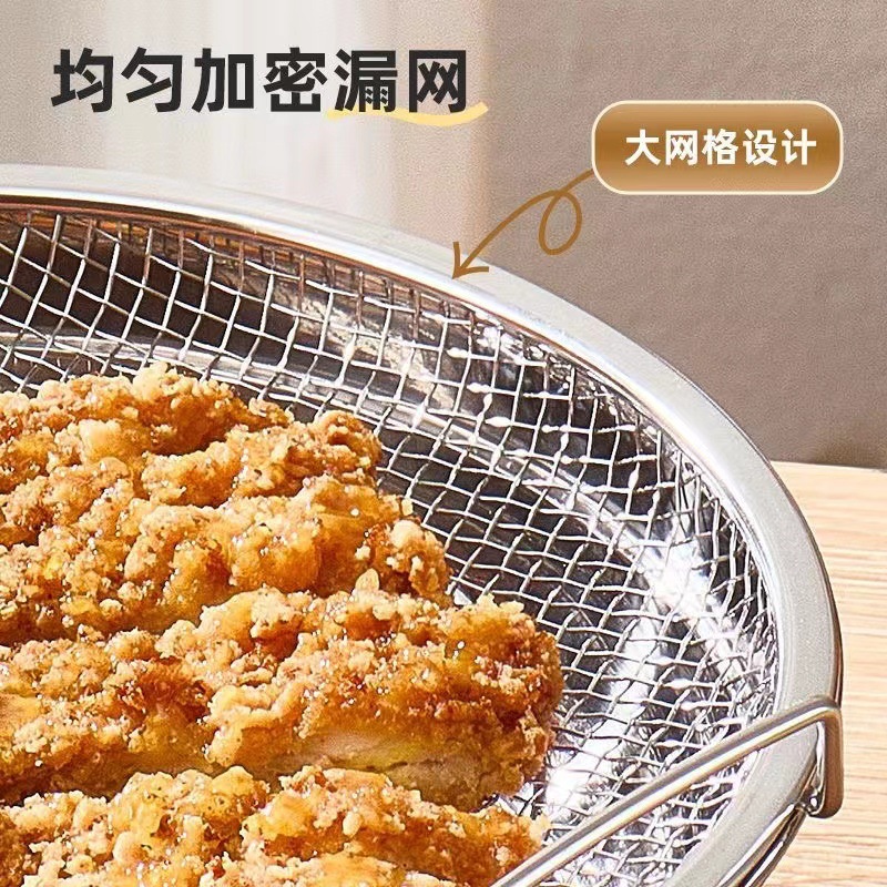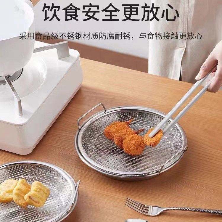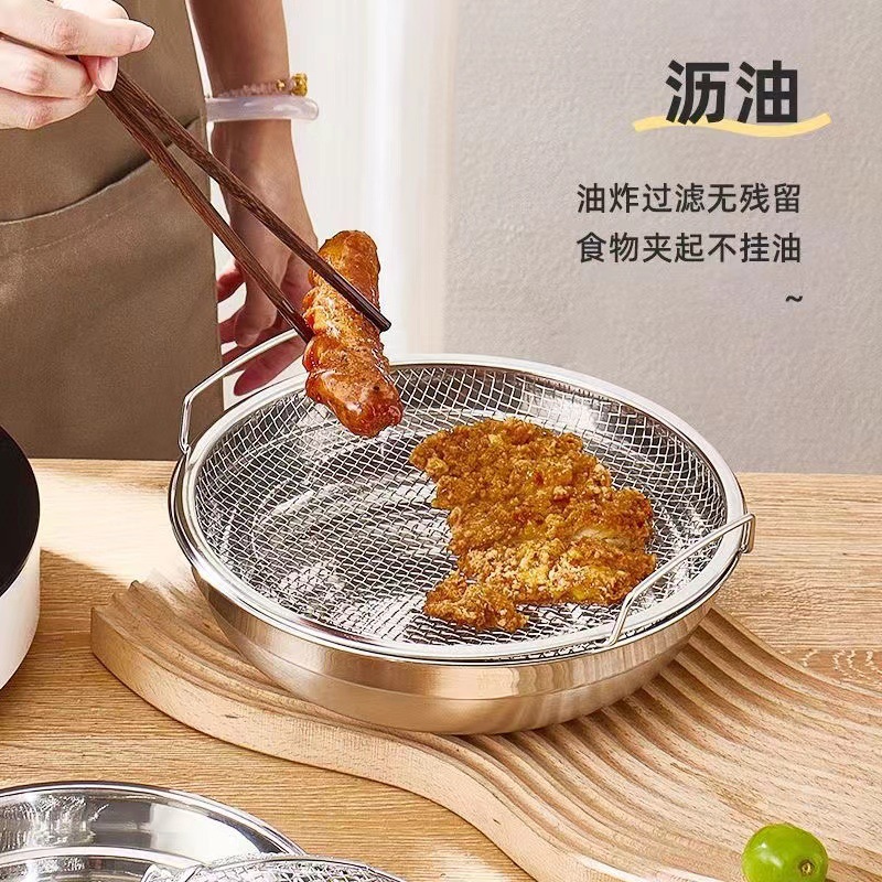 不锈钢油炸控油漏网家用双耳过滤网空气炸锅适用厨房沥油网盘