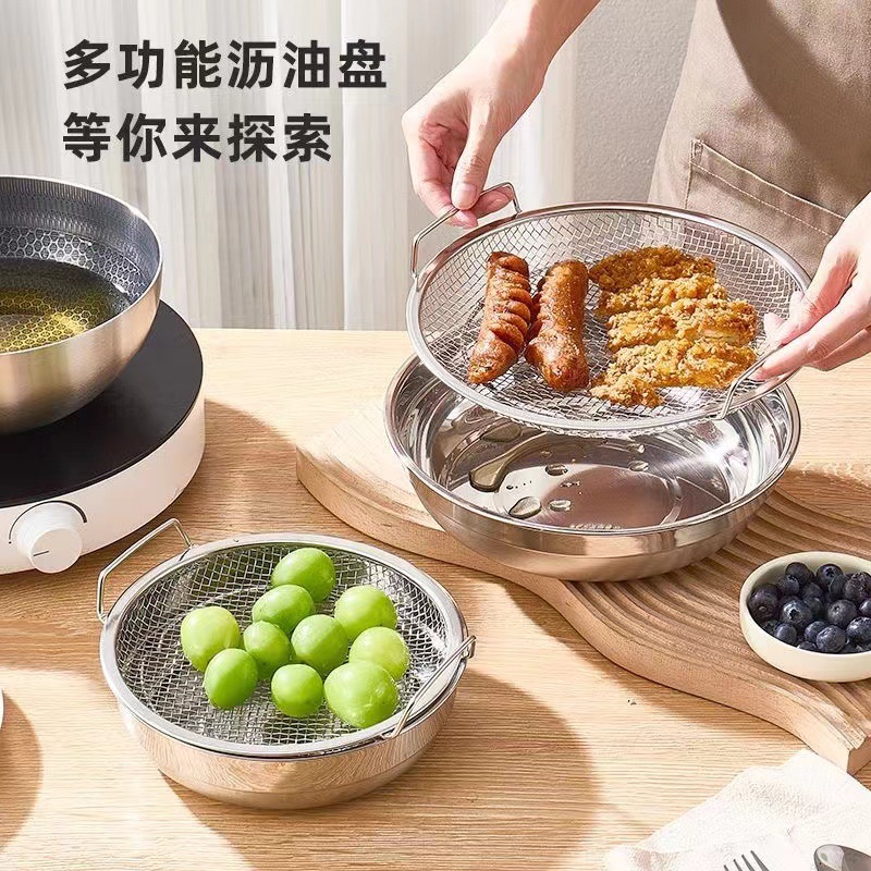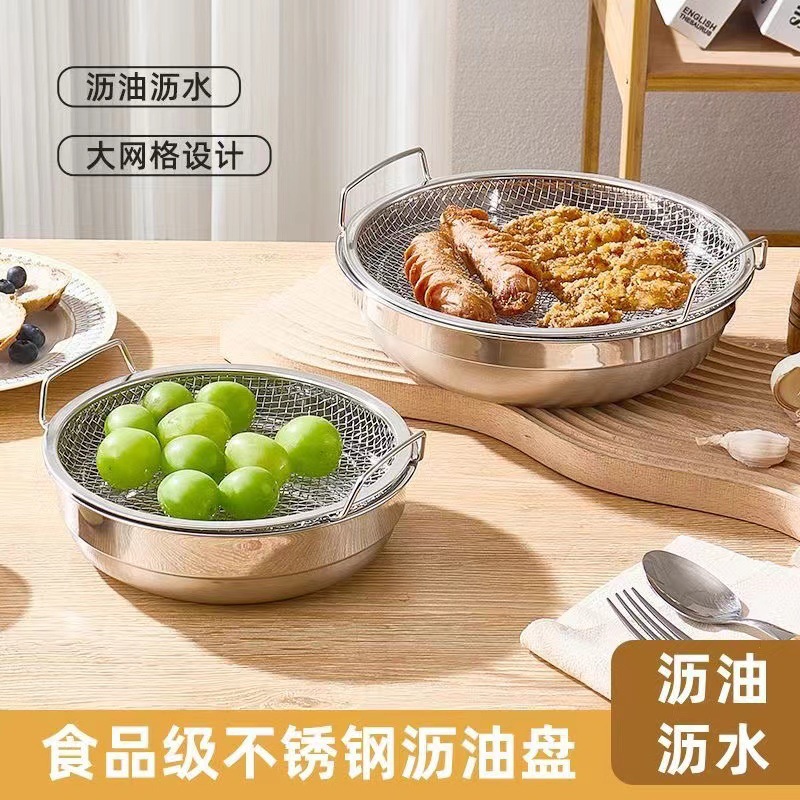 不锈钢沥油盘沥油架家用厨房沥油托盘多功能油炸滤油盘漏油过滤网