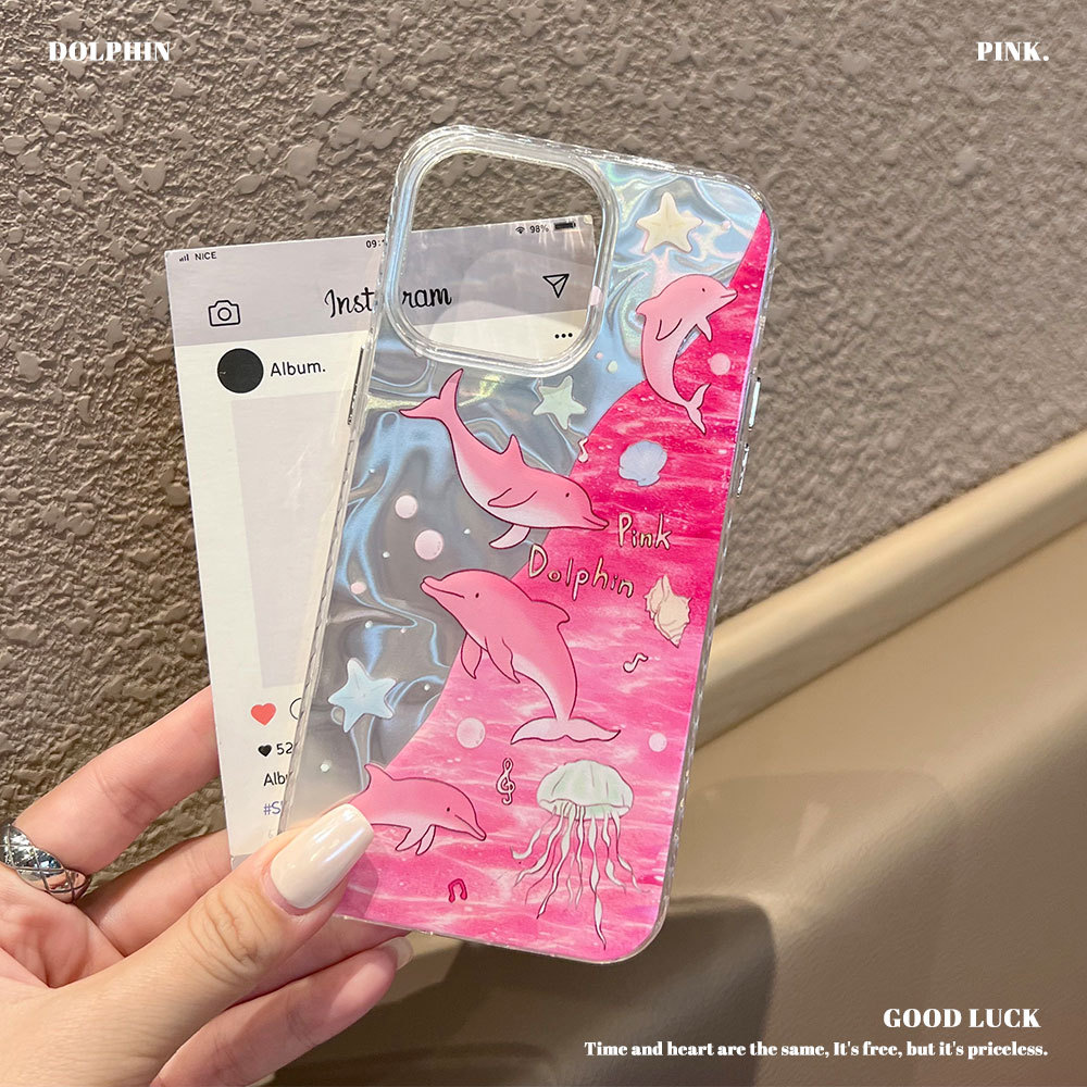 粉色海豚适用iPhone17AIR手机壳水波纹高级感苹果16PRO手机保护套