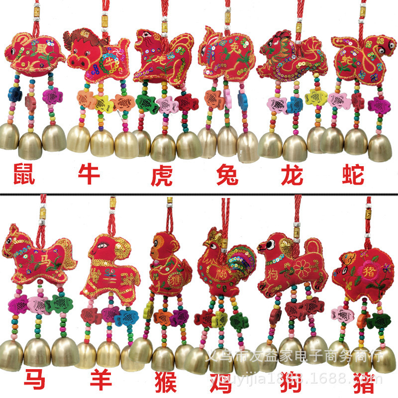 民族風布芸12年生肖風鈴刺繍スパンコール十二生肖風鈴本命年動物生肖ペンダント