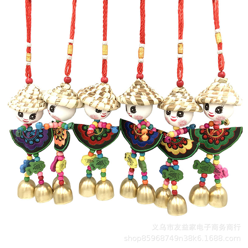 麦わら帽子刺繍風鈴民族風特色麦わら帽子人刺繍風鈴ストラップ晴れ人形風鈴ストラップ
